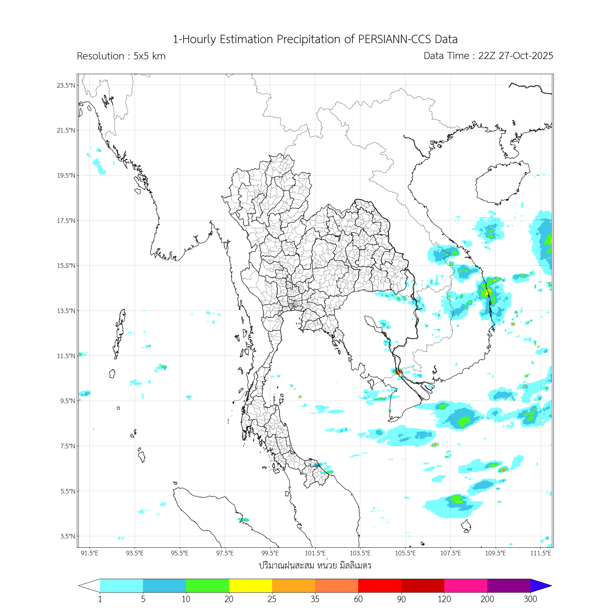 การประมาณค่าฝนจากดาวเทียม เมื่อวาน (27/10/2025)