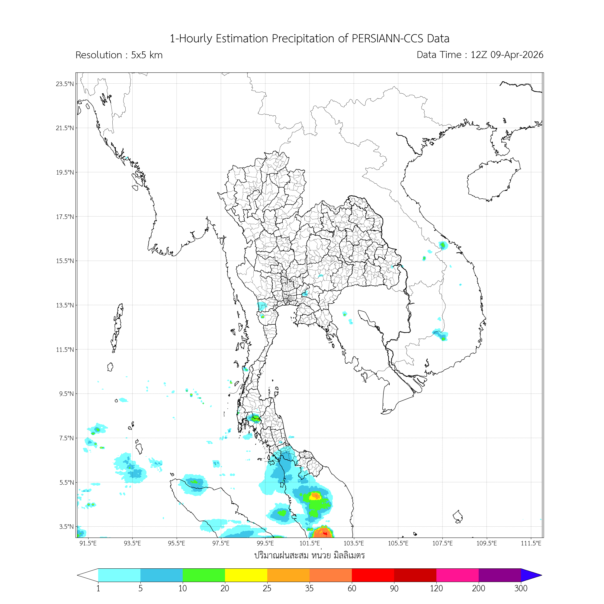 ค่าประมาณฝนสะสม 3 ชั่วโมง จากดาวเทียมอุตุนิยมวิทยา