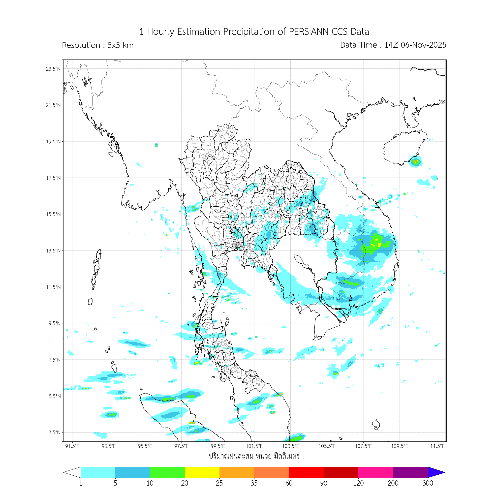 การประมาณค่าฝนจากดาวเทียม เมื่อวาน (05/11/2025)