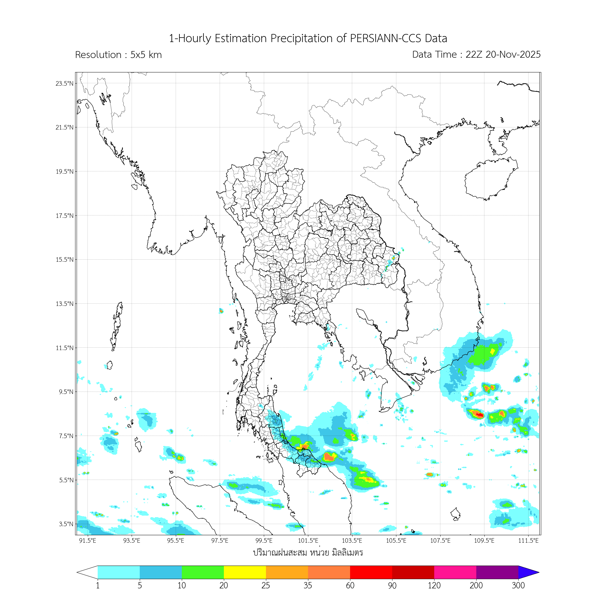 การประมาณค่าฝนจากดาวเทียม เมื่อวาน (20/11/2025)
