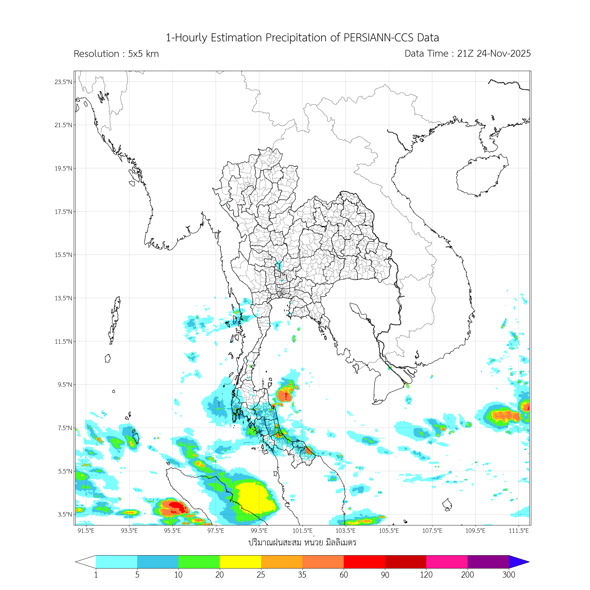 การประมาณค่าฝนจากดาวเทียม เมื่อวาน (24/11/2025)