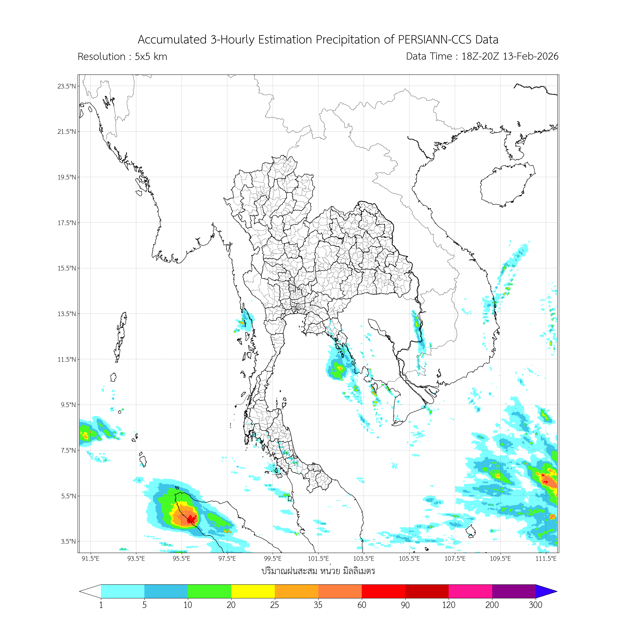 การประมาณค่าฝนจากดาวเทียม เมื่อวาน (13/02/2026)