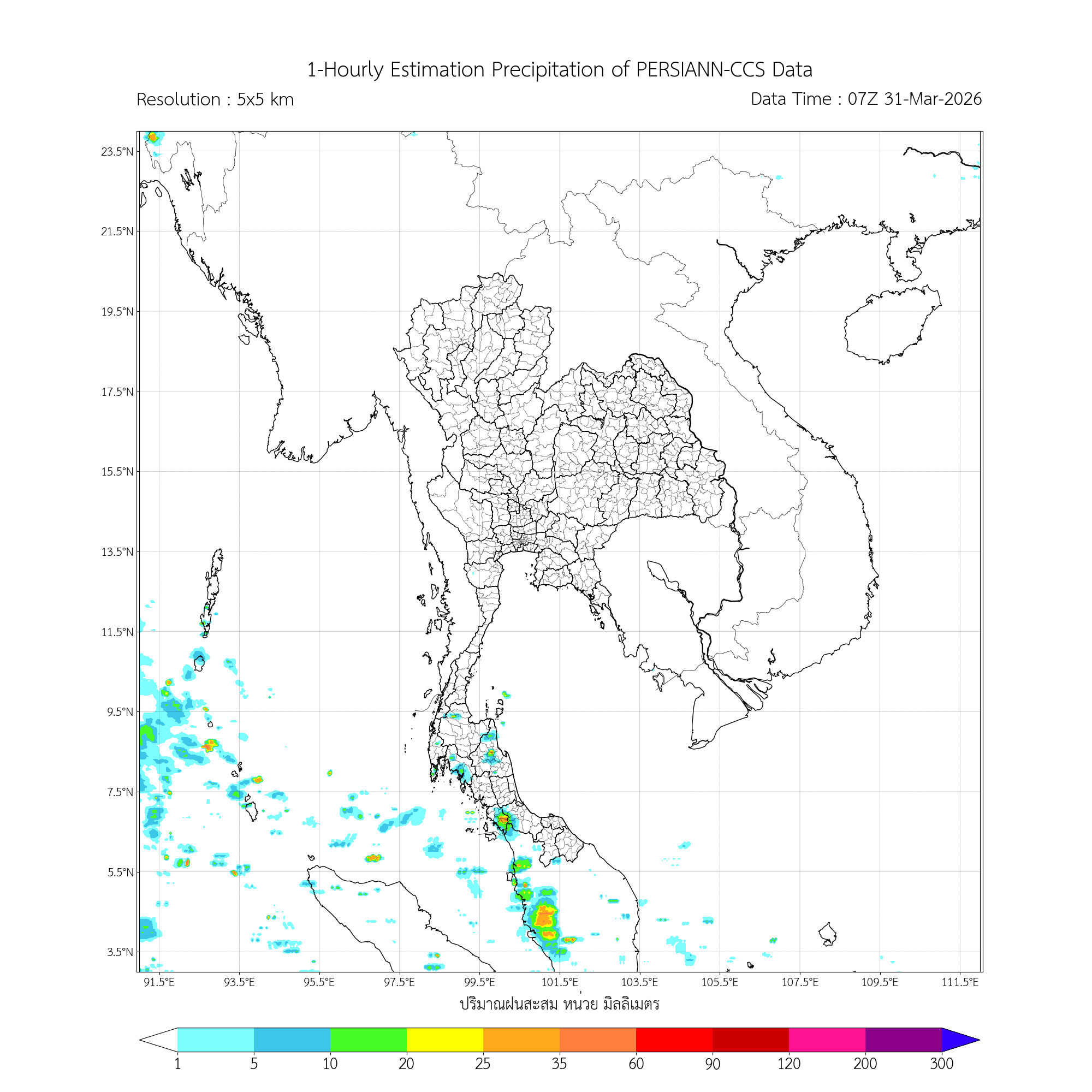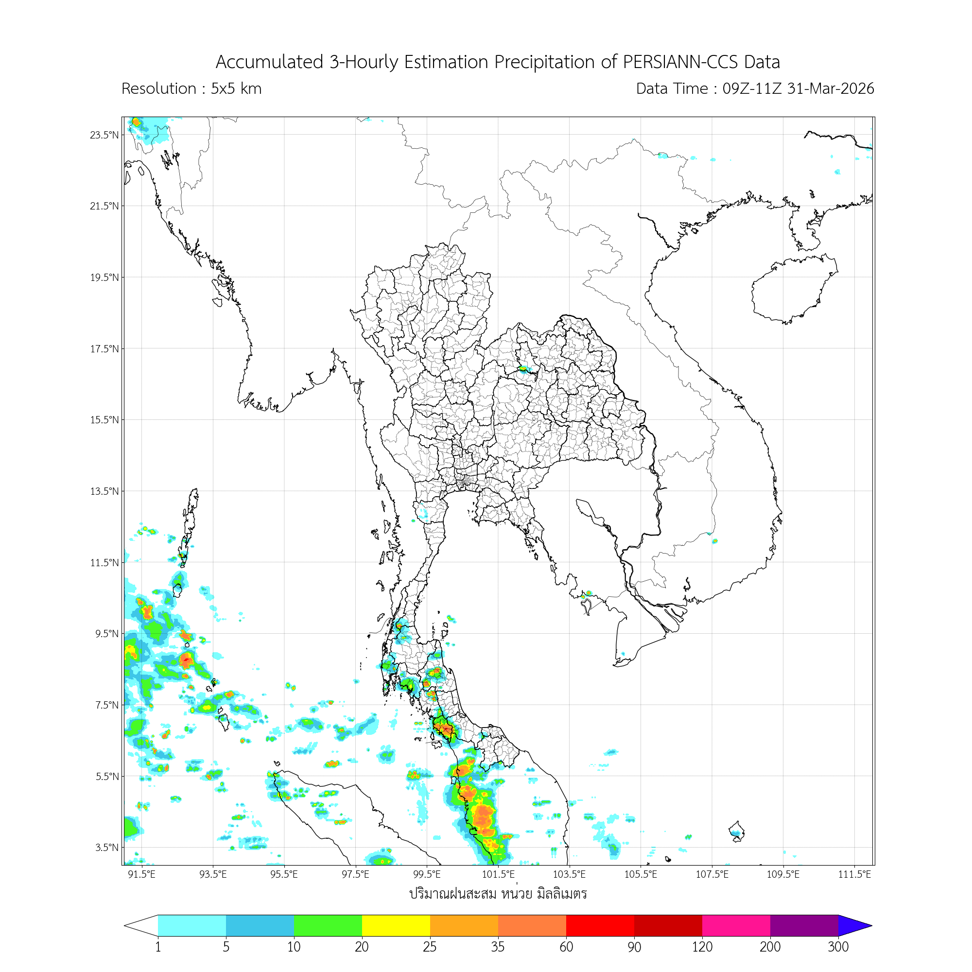 ค่าประมาณฝนสะสม 3 ชั่วโมง จากดาวเทียมอุตุนิยมวิทยา