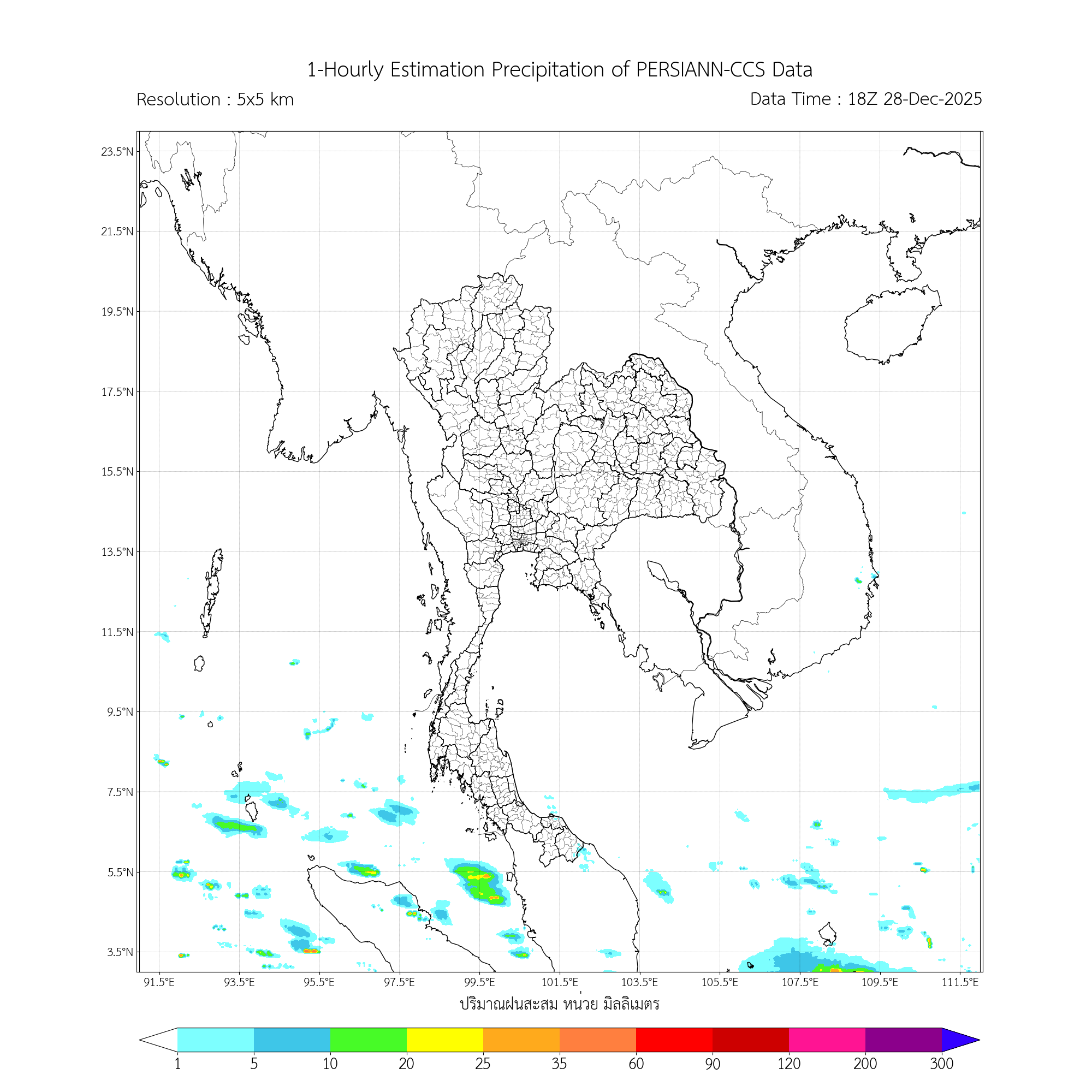การประมาณค่าฝนจากดาวเทียม เมื่อวาน (28/12/2025)