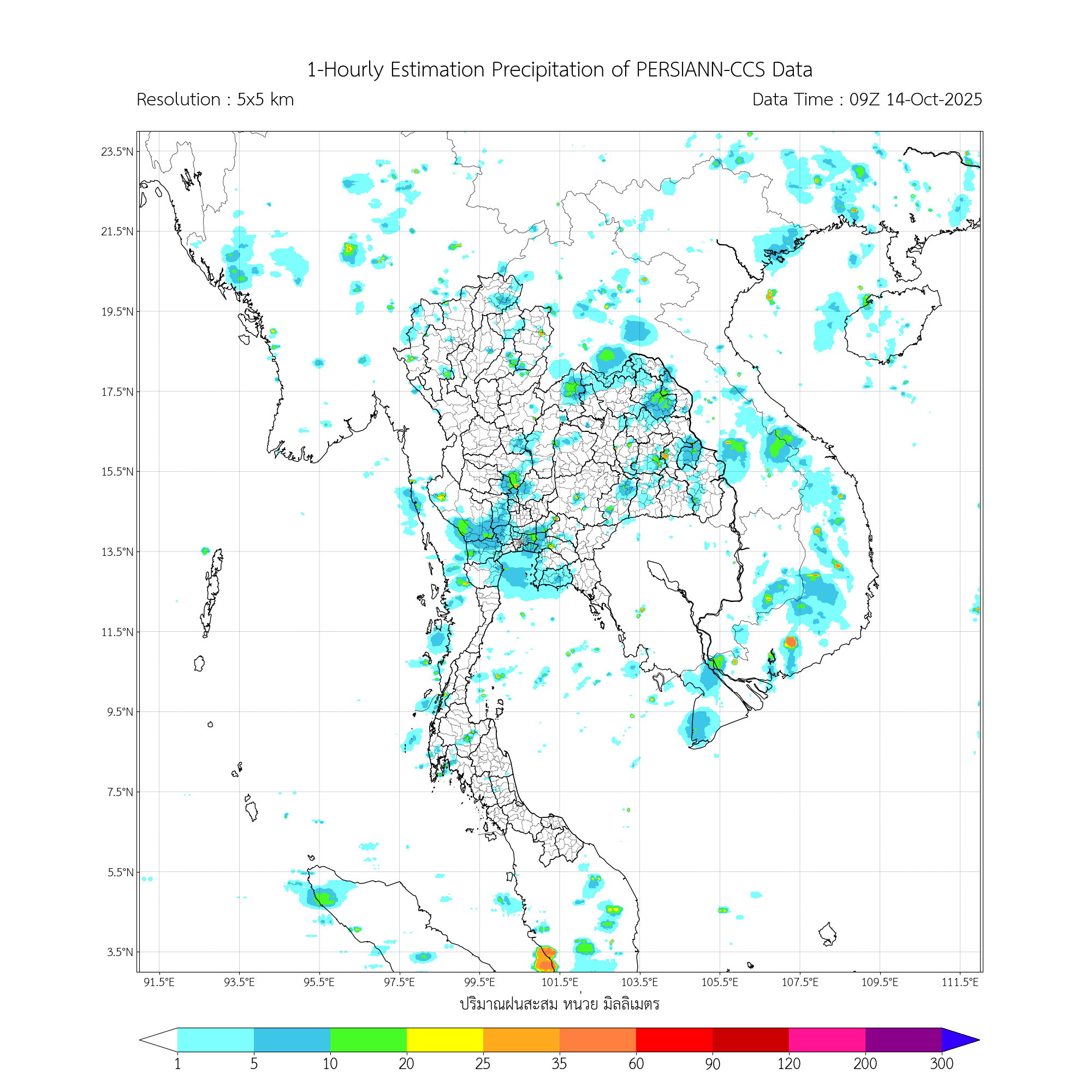 ค่าประมาณฝนสะสม 3 ชั่วโมง จากดาวเทียมอุตุนิยมวิทยา