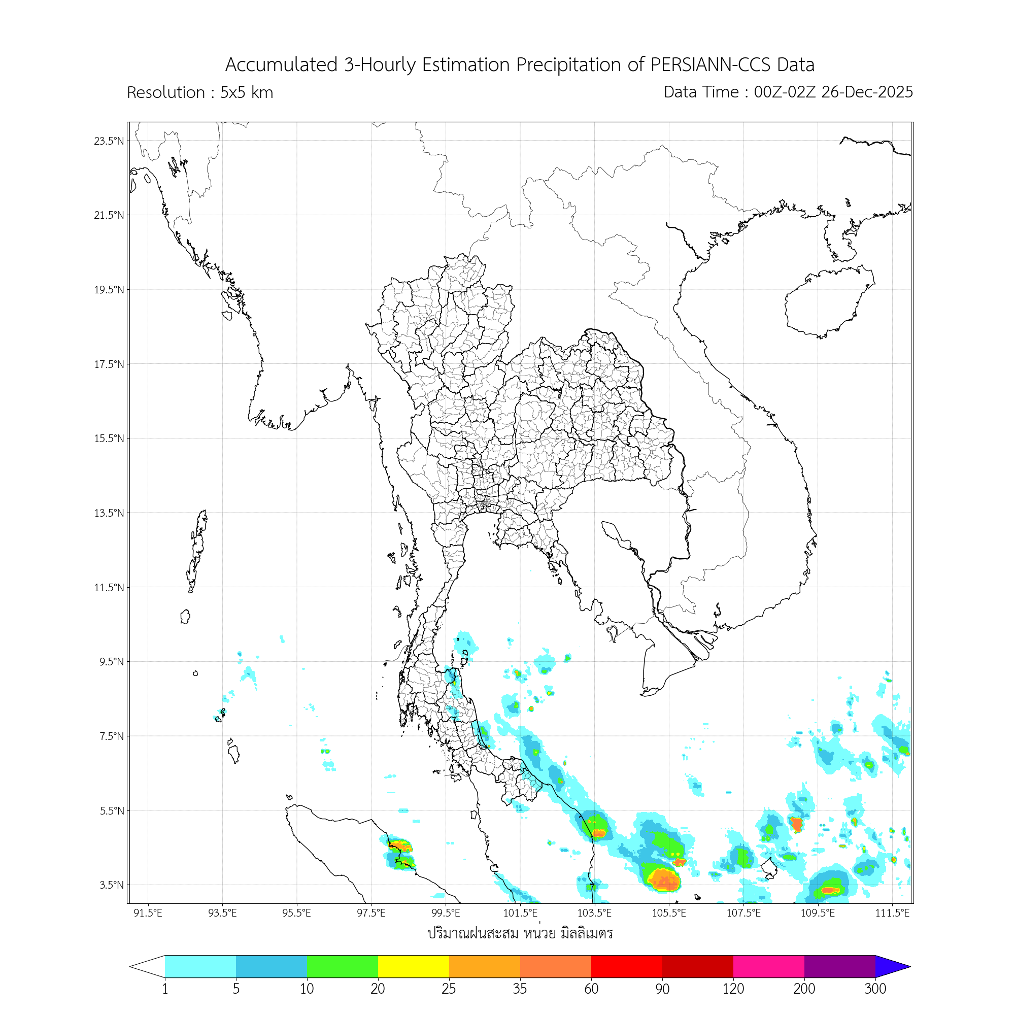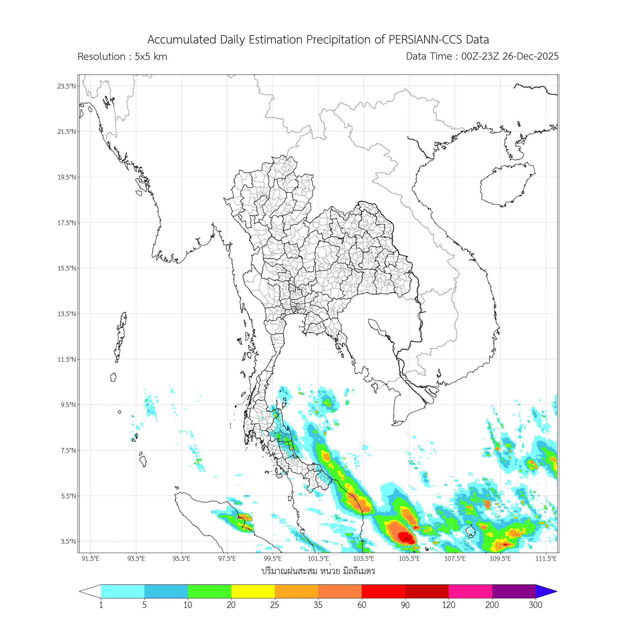 การประมาณค่าฝนจากดาวเทียม เมื่อวาน (25/12/2025)