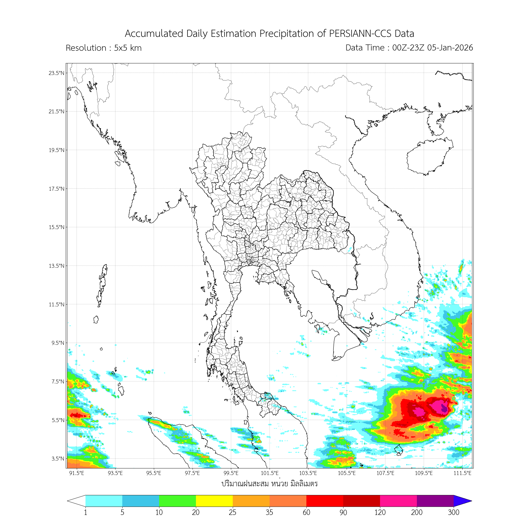 การประมาณค่าฝนจากดาวเทียม เมื่อวาน (04/01/2026)