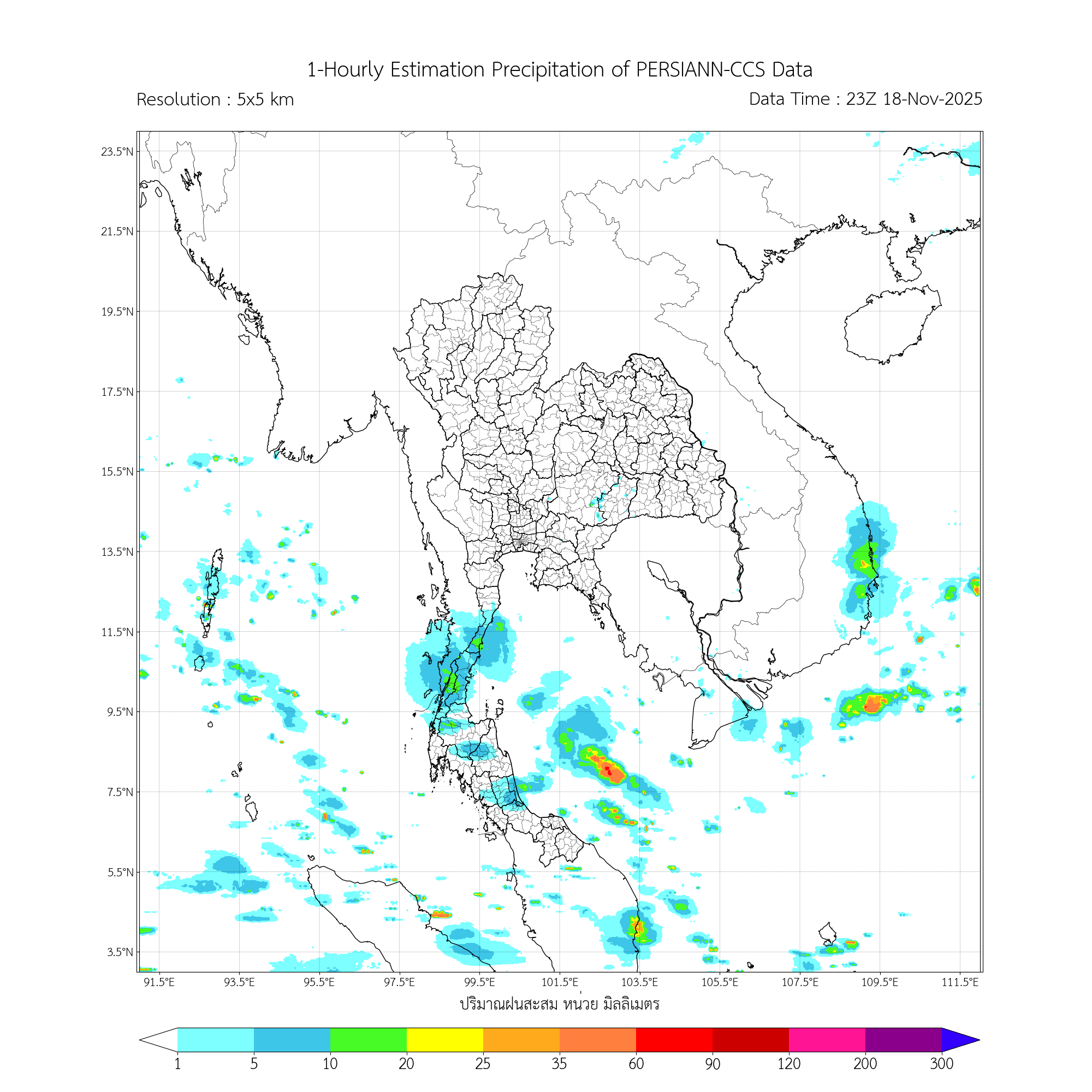 การประมาณค่าฝนจากดาวเทียม เมื่อวาน (18/11/2025)