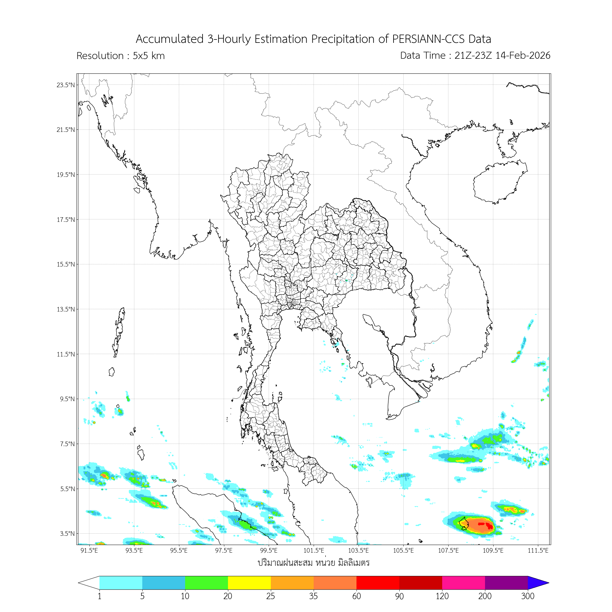 การประมาณค่าฝนจากดาวเทียม เมื่อวาน (14/02/2026)