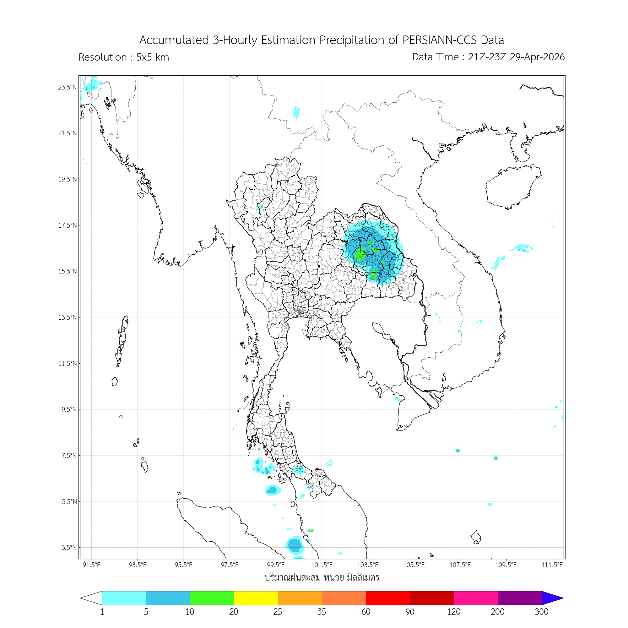 ค่าประมาณฝนสะสม 3 ชั่วโมง จากดาวเทียมอุตุนิยมวิทยา
