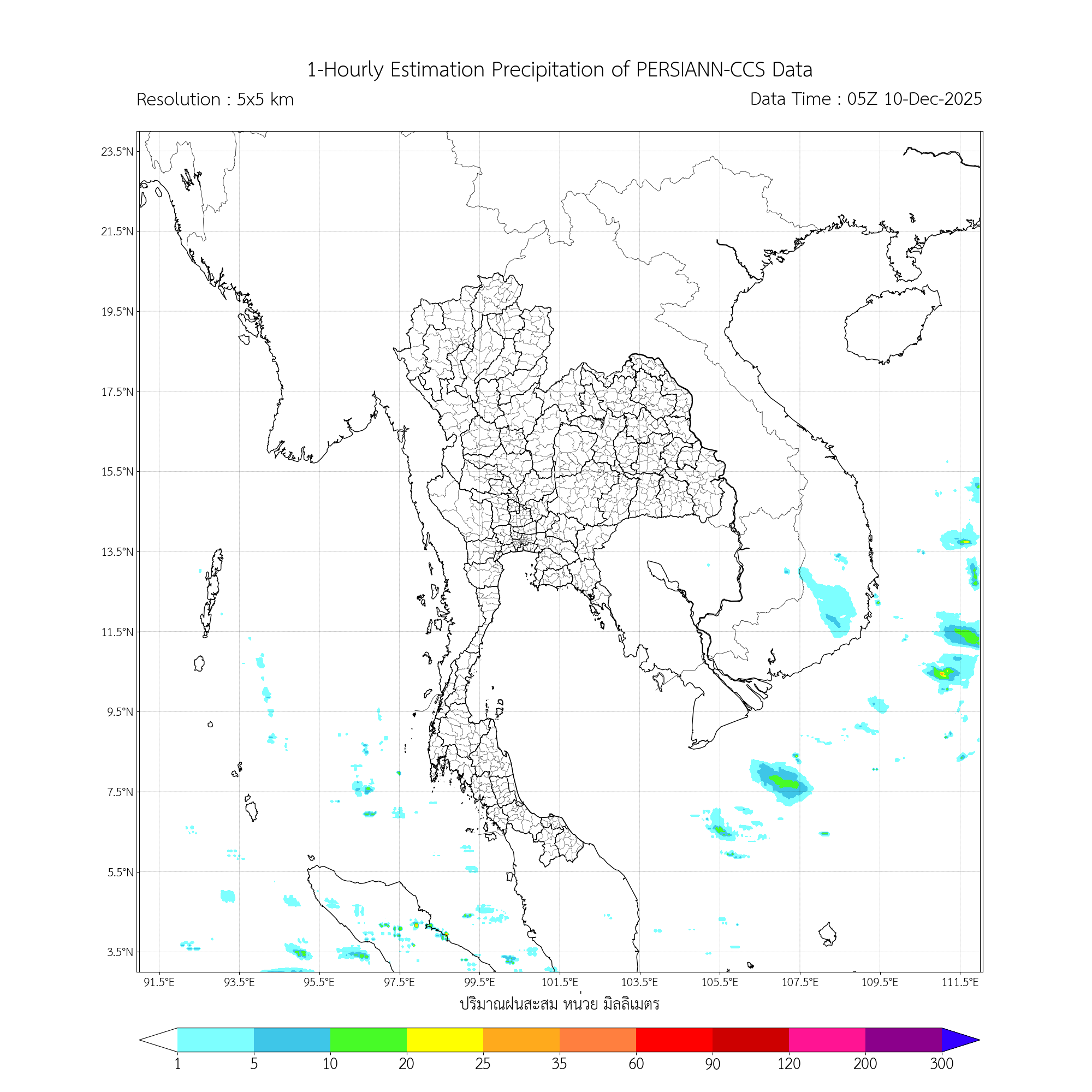 การประมาณค่าฝนจากดาวเทียม เมื่อวาน (09/12/2025)