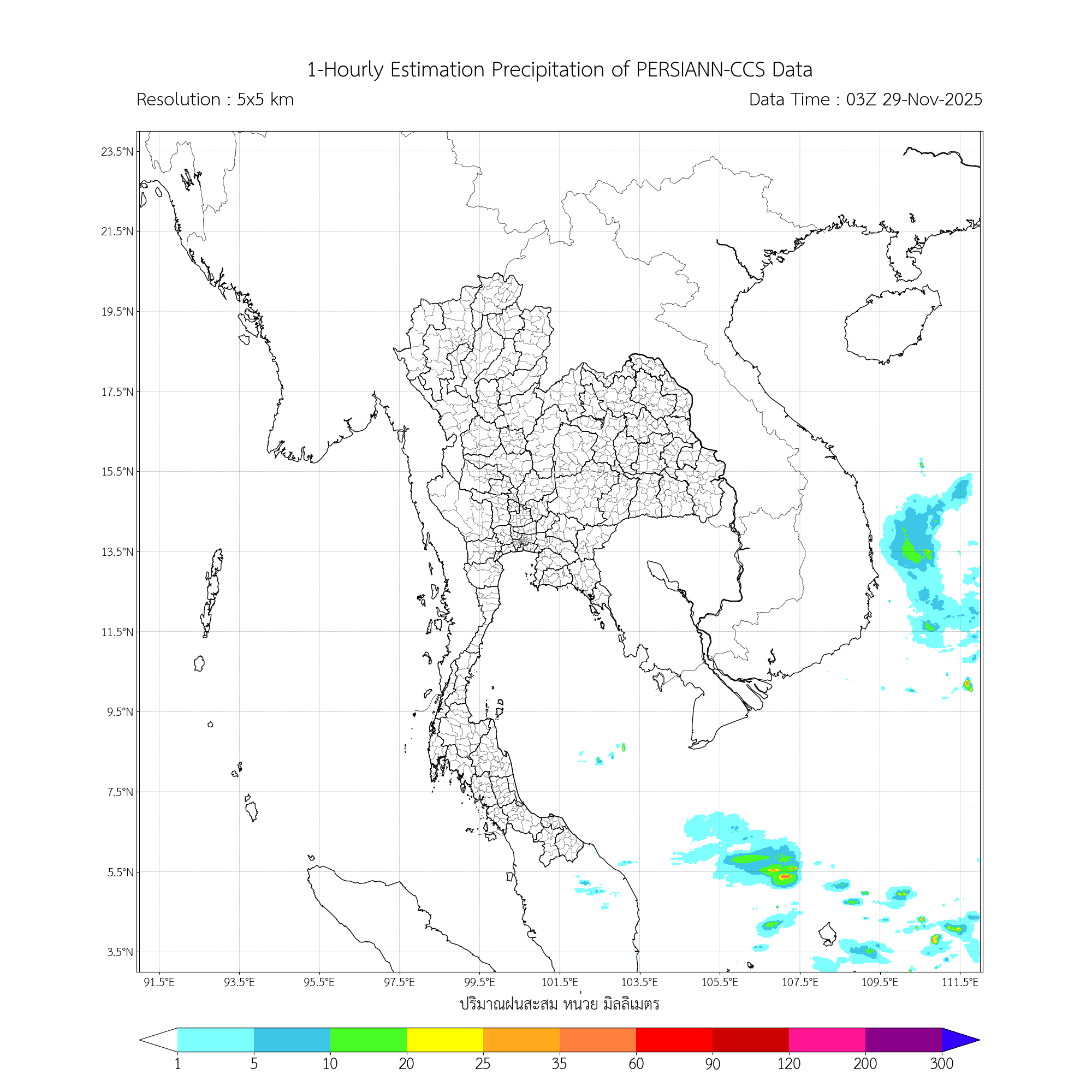 การประมาณค่าฝนจากดาวเทียม เมื่อวาน (28/11/2025)