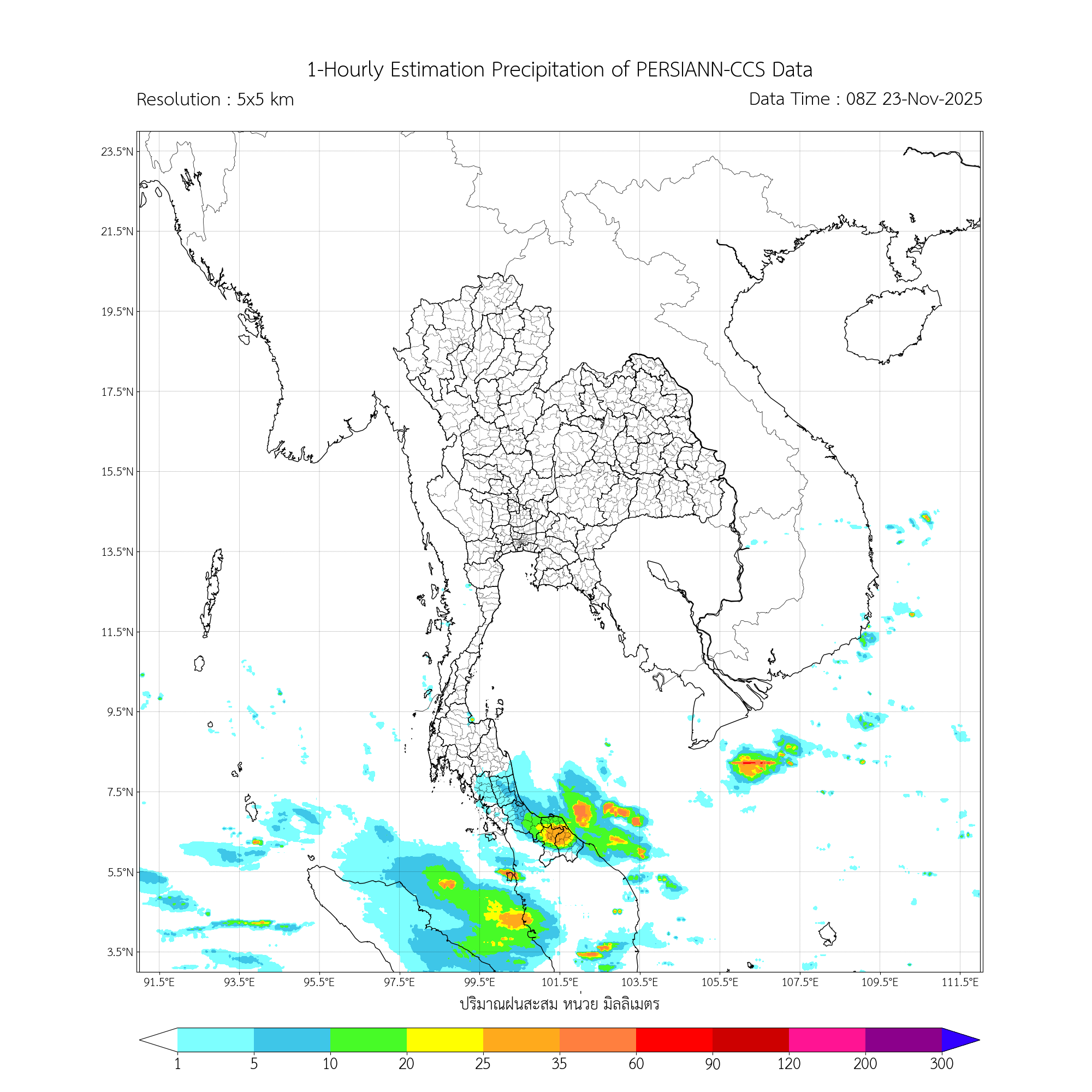 การประมาณค่าฝนจากดาวเทียม เมื่อวาน (22/11/2025)