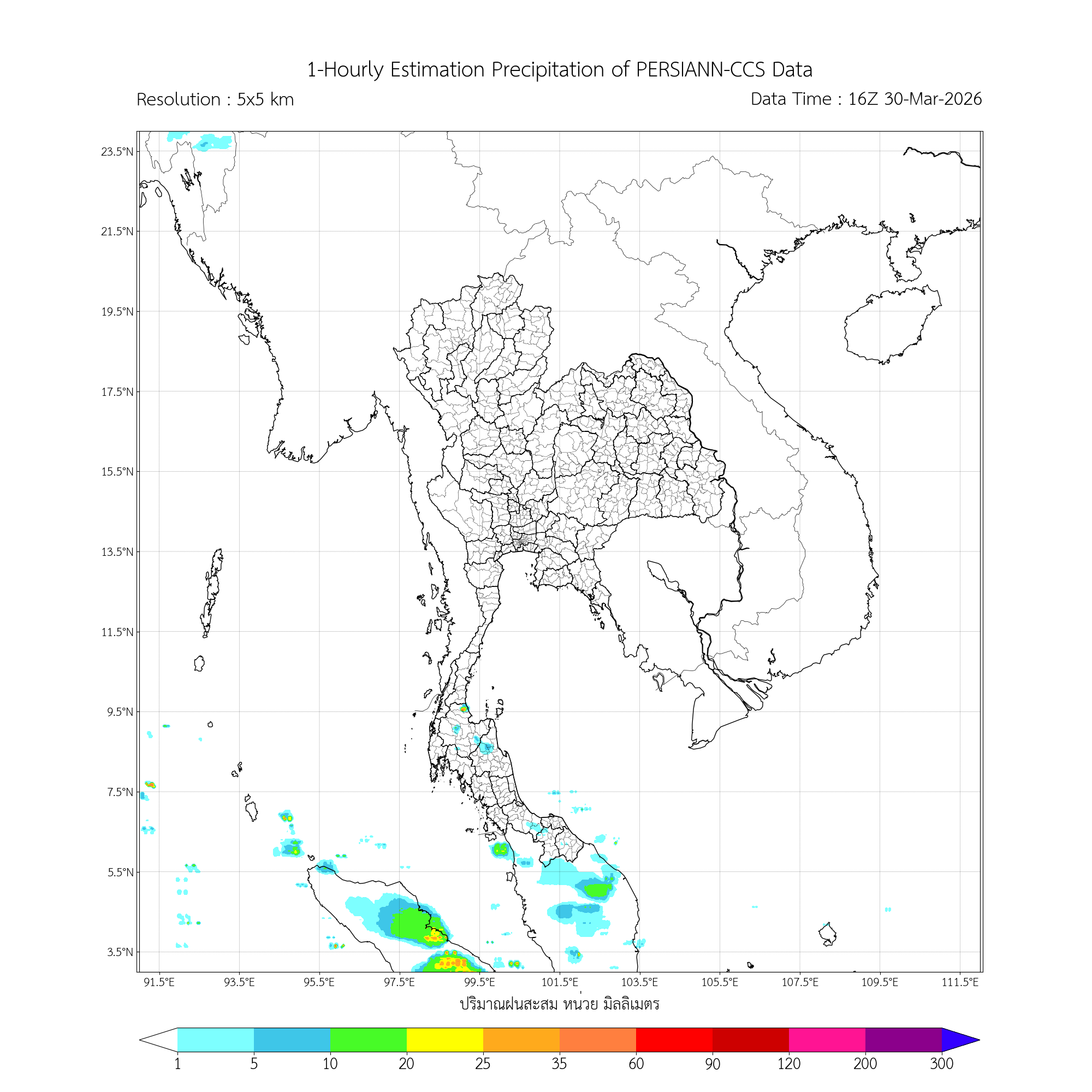 การประมาณค่าฝนจากดาวเทียม เมื่อวาน (30/03/2026)