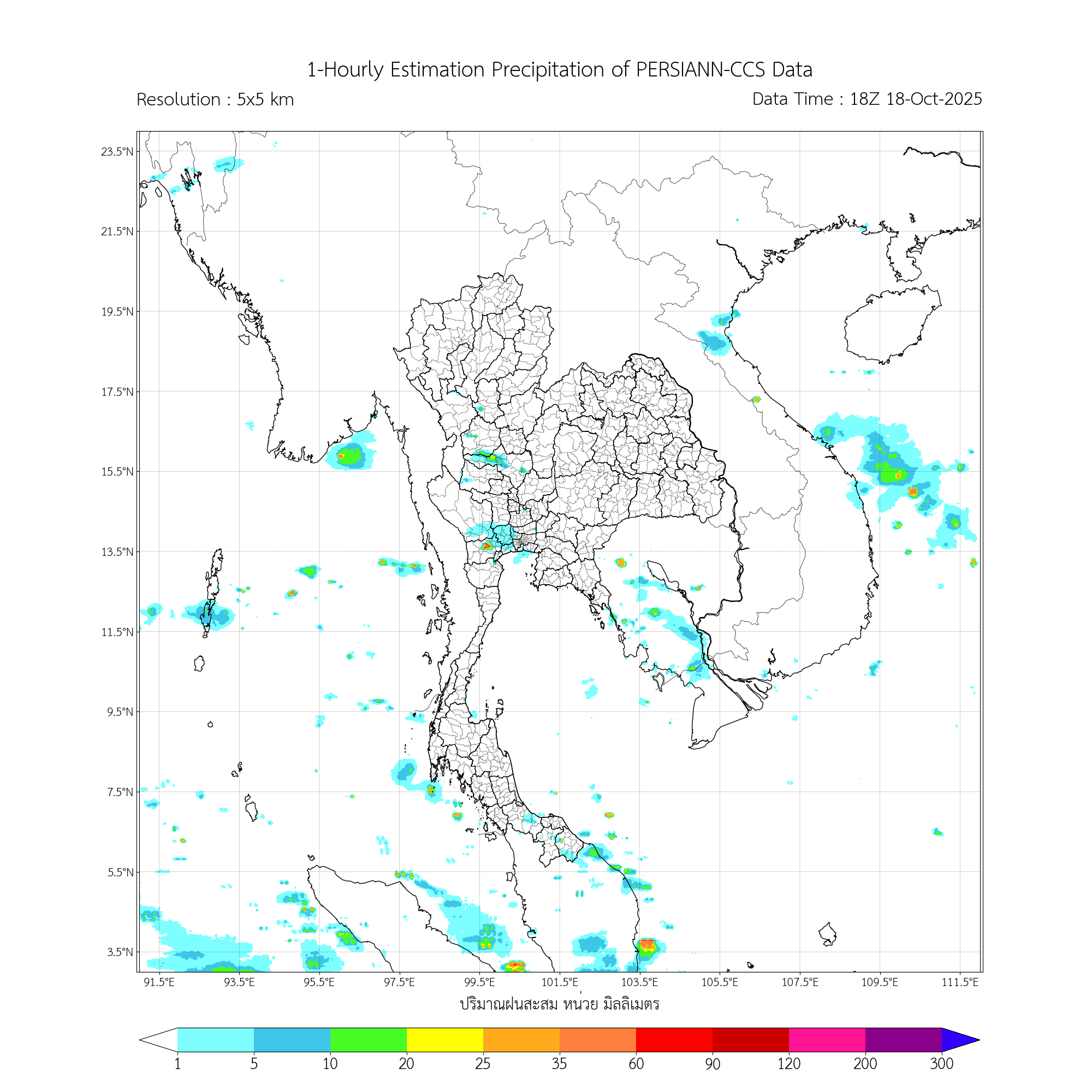 การประมาณค่าฝนจากดาวเทียม เมื่อวาน (18/10/2025)