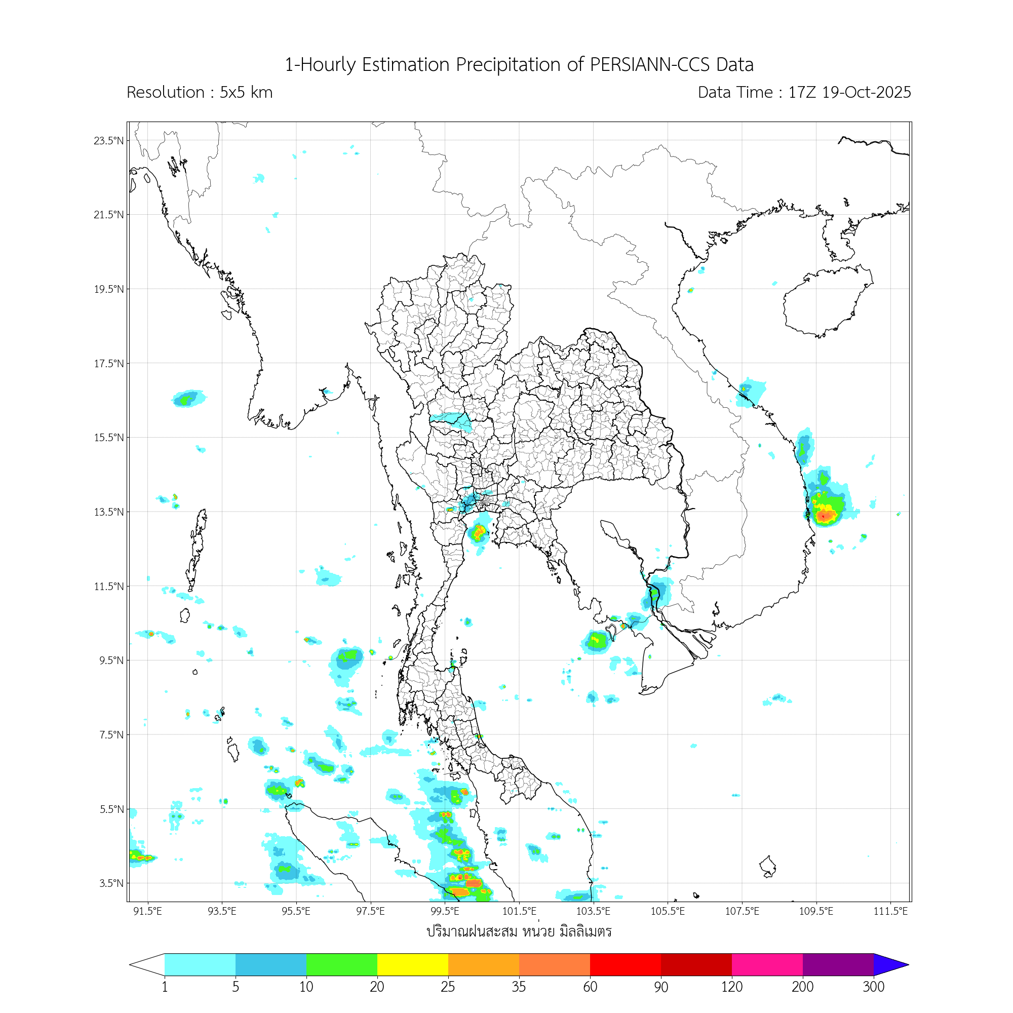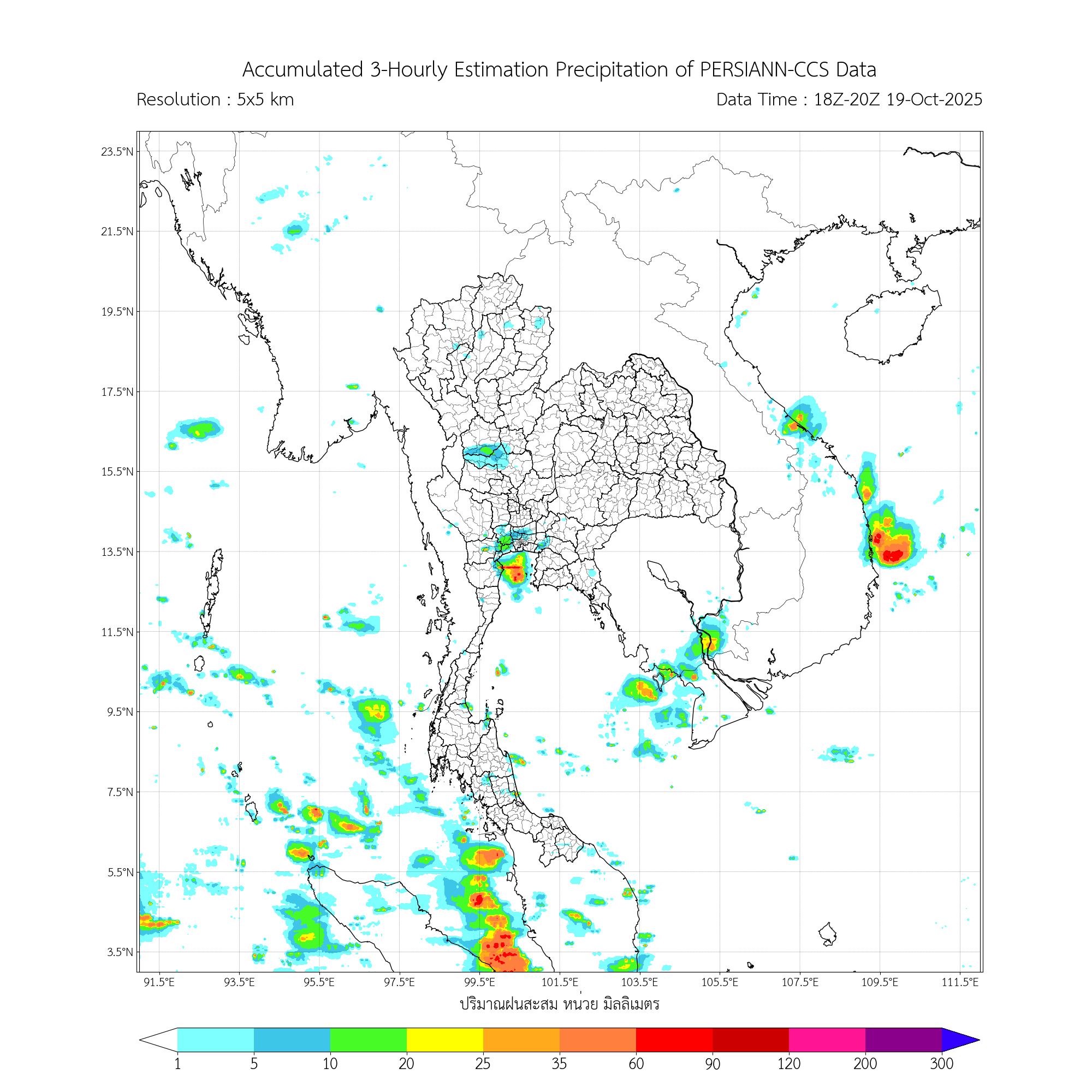 การประมาณค่าฝนจากดาวเทียม เมื่อวาน (19/10/2025)