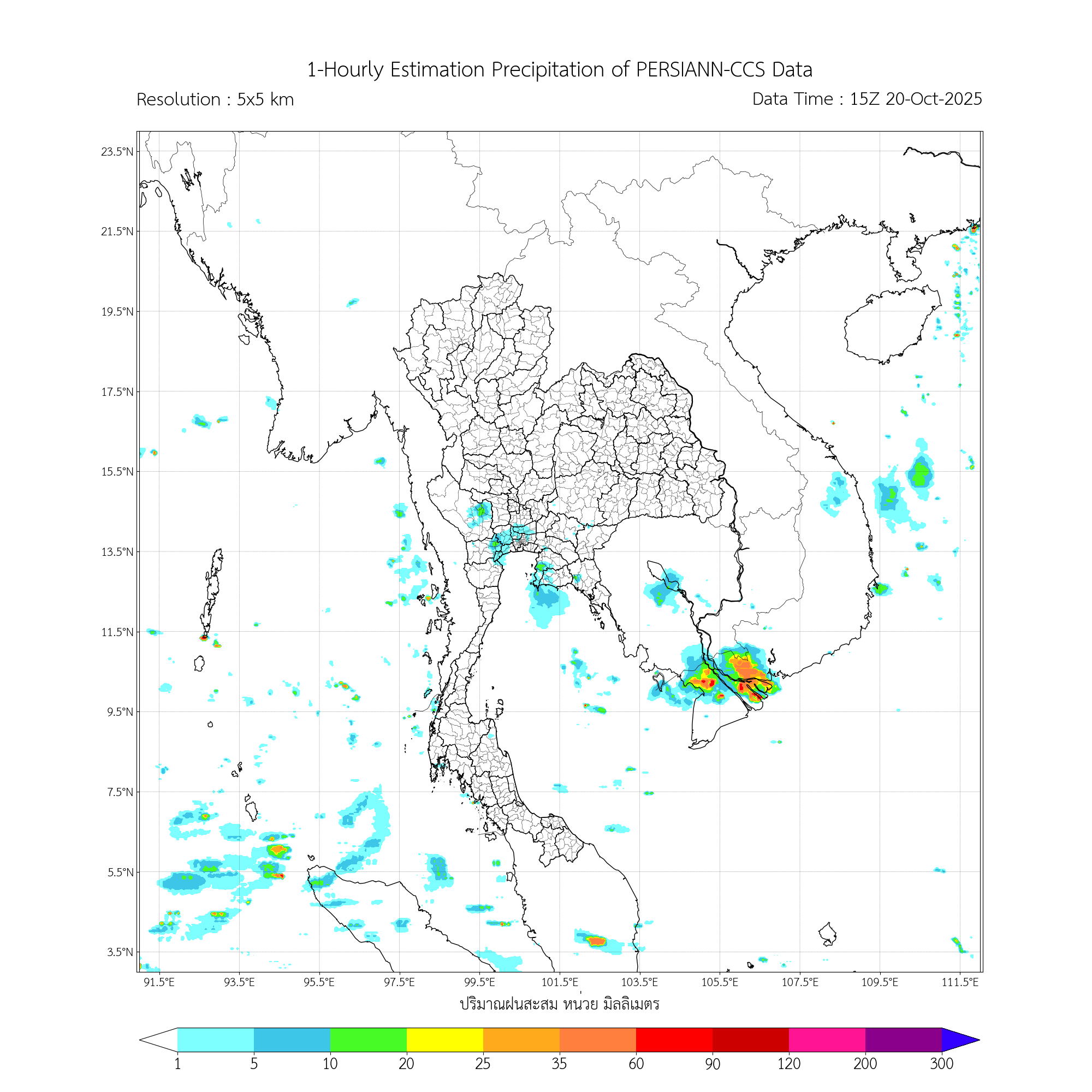 การประมาณค่าฝนจากดาวเทียม เมื่อวาน (20/10/2025)