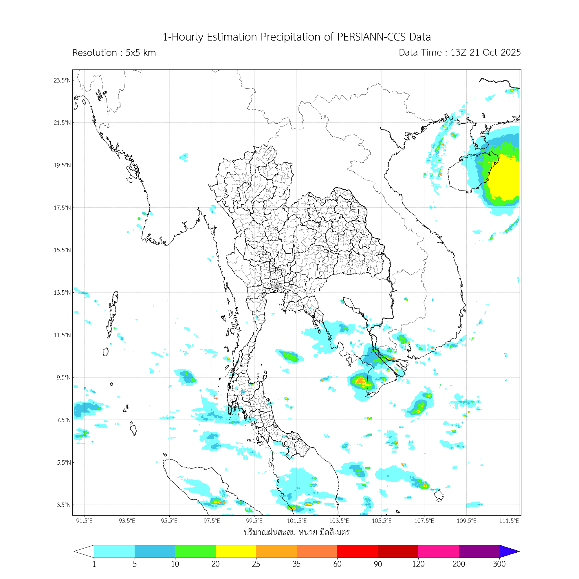 การประมาณค่าฝนจากดาวเทียม เมื่อวาน (20/10/2025)