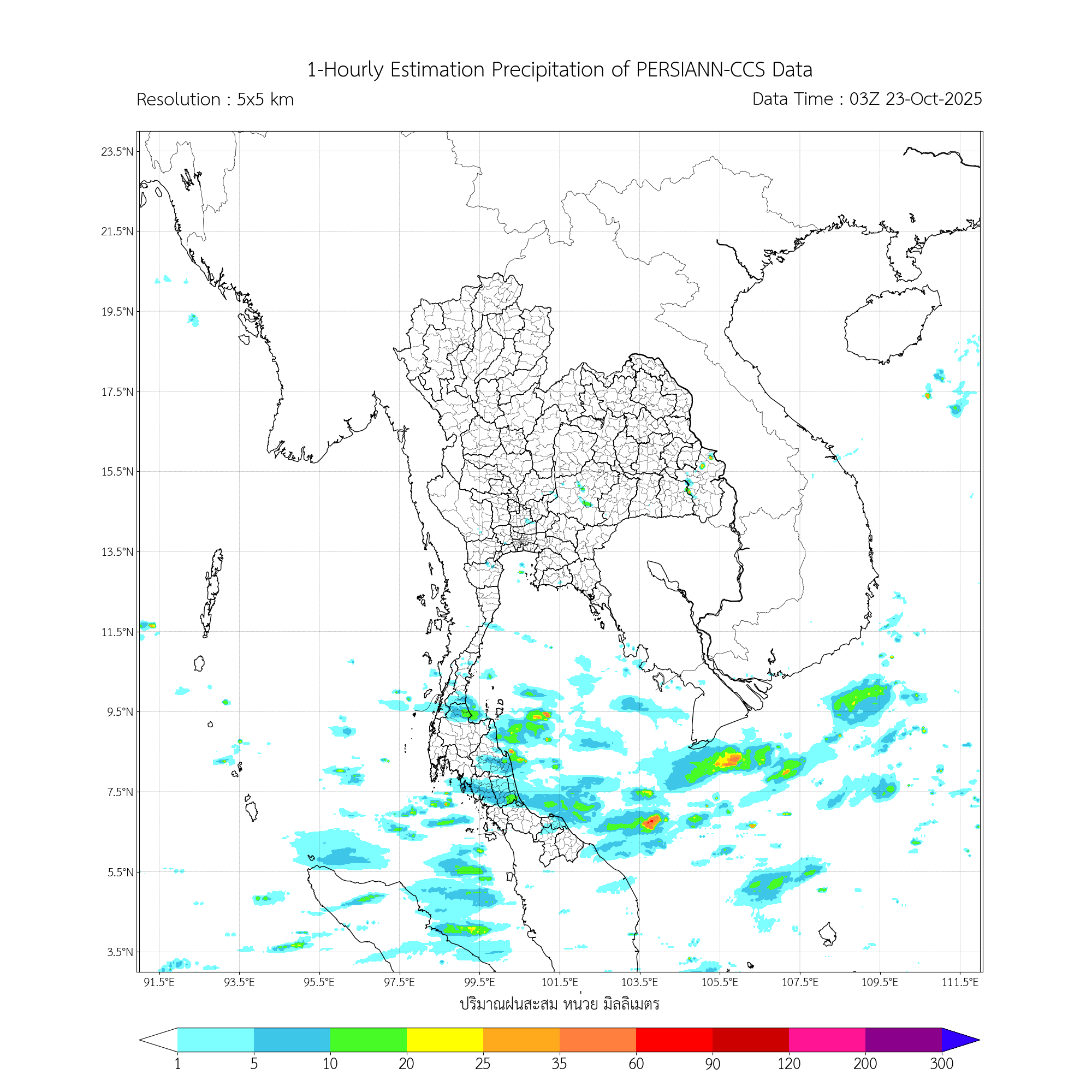 การประมาณค่าฝนจากดาวเทียม เมื่อวาน (22/10/2025)