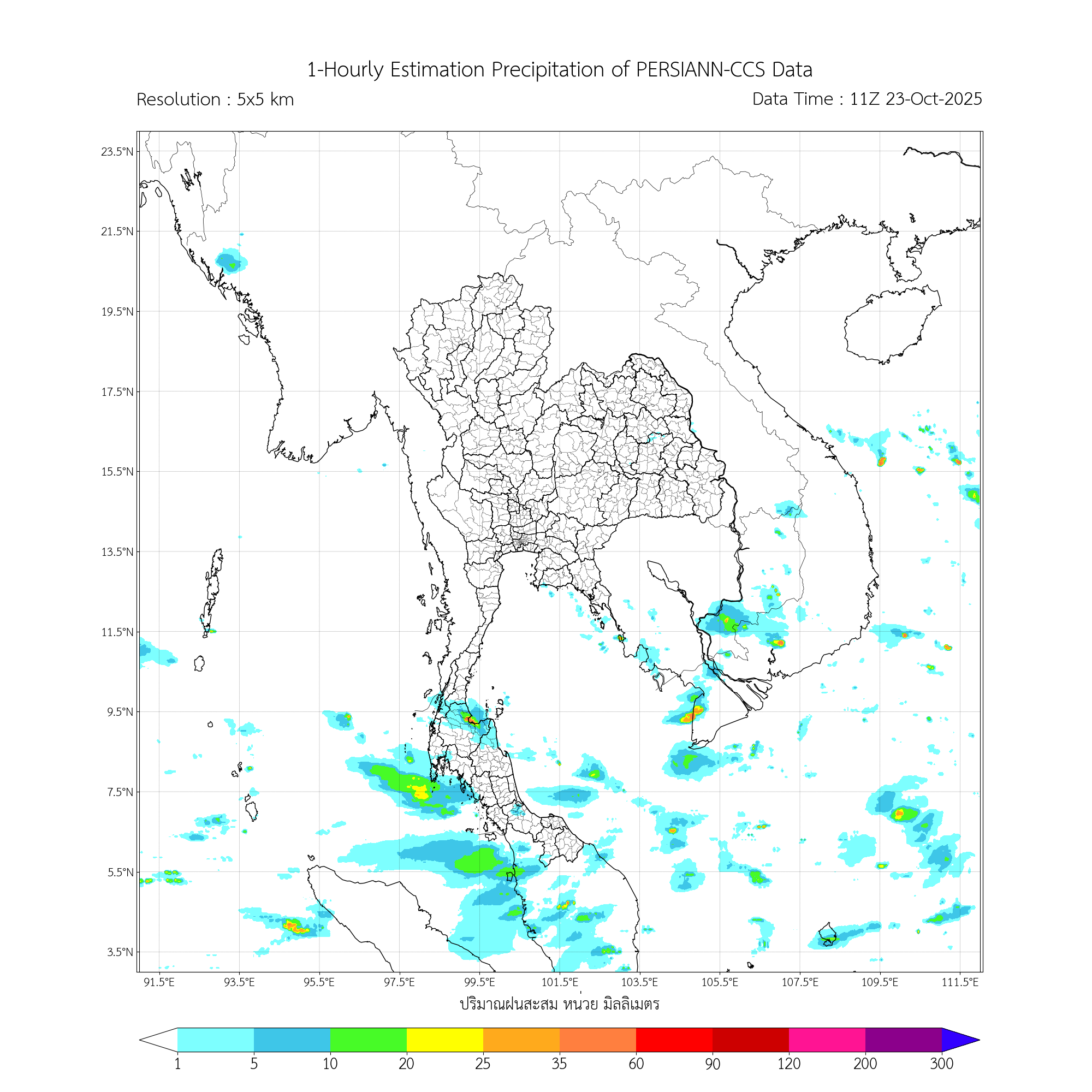 การประมาณค่าฝนจากดาวเทียม เมื่อวาน (22/10/2025)