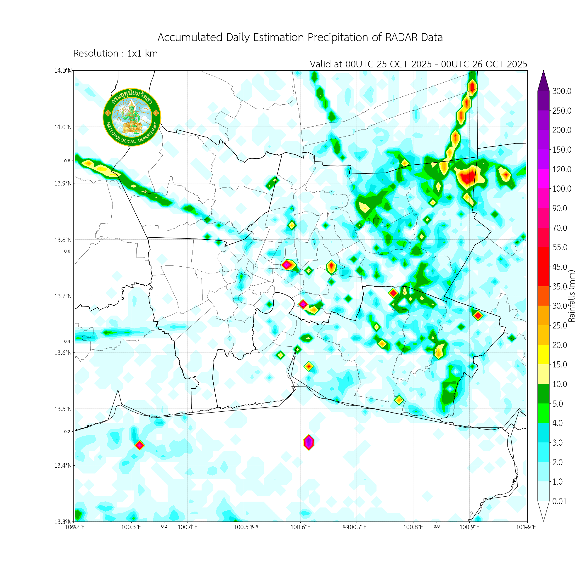 การประมาณค่าฝนจากดาวเทียม เมื่อวาน (25/10/2025)