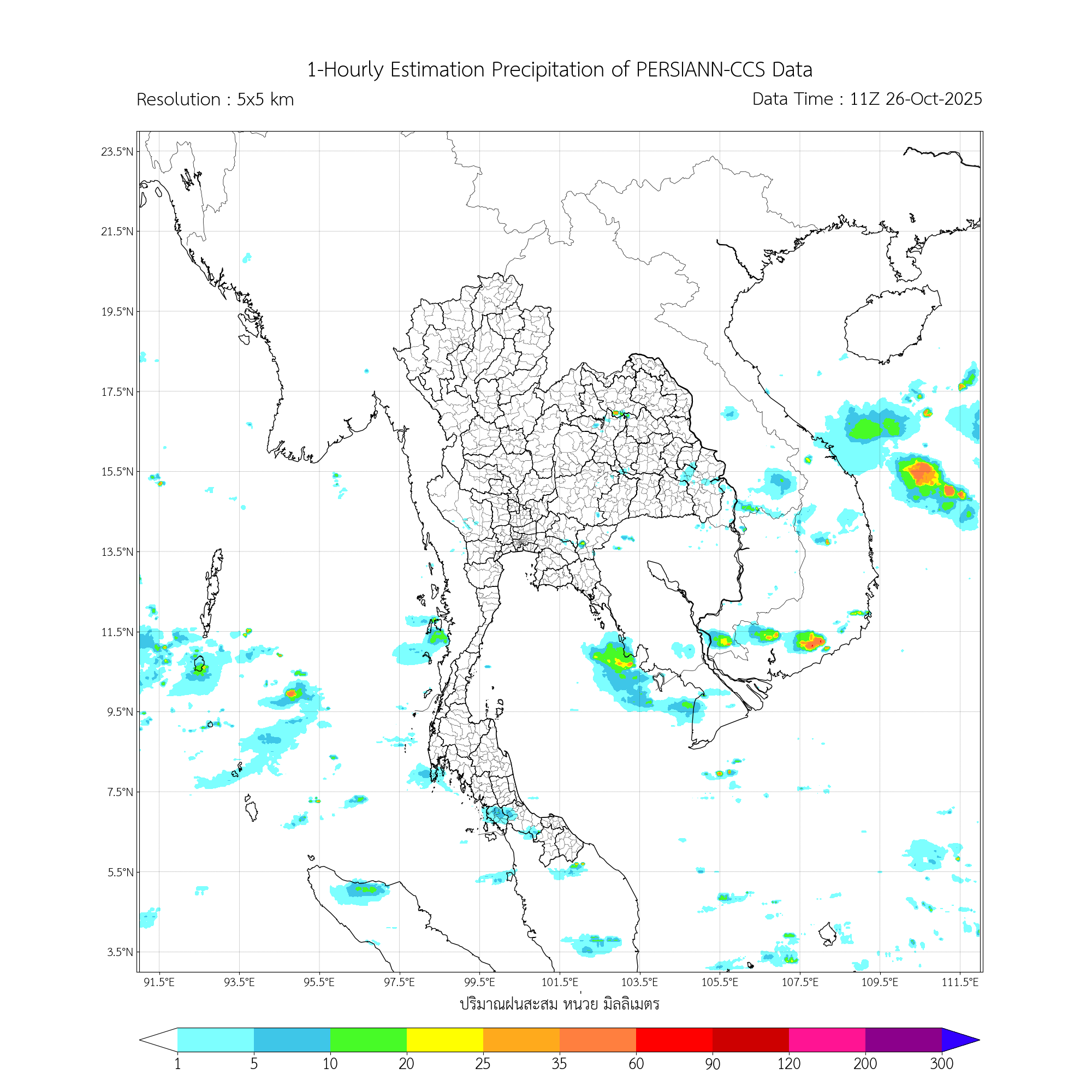 การประมาณค่าฝนจากดาวเทียม เมื่อวาน (25/10/2025)