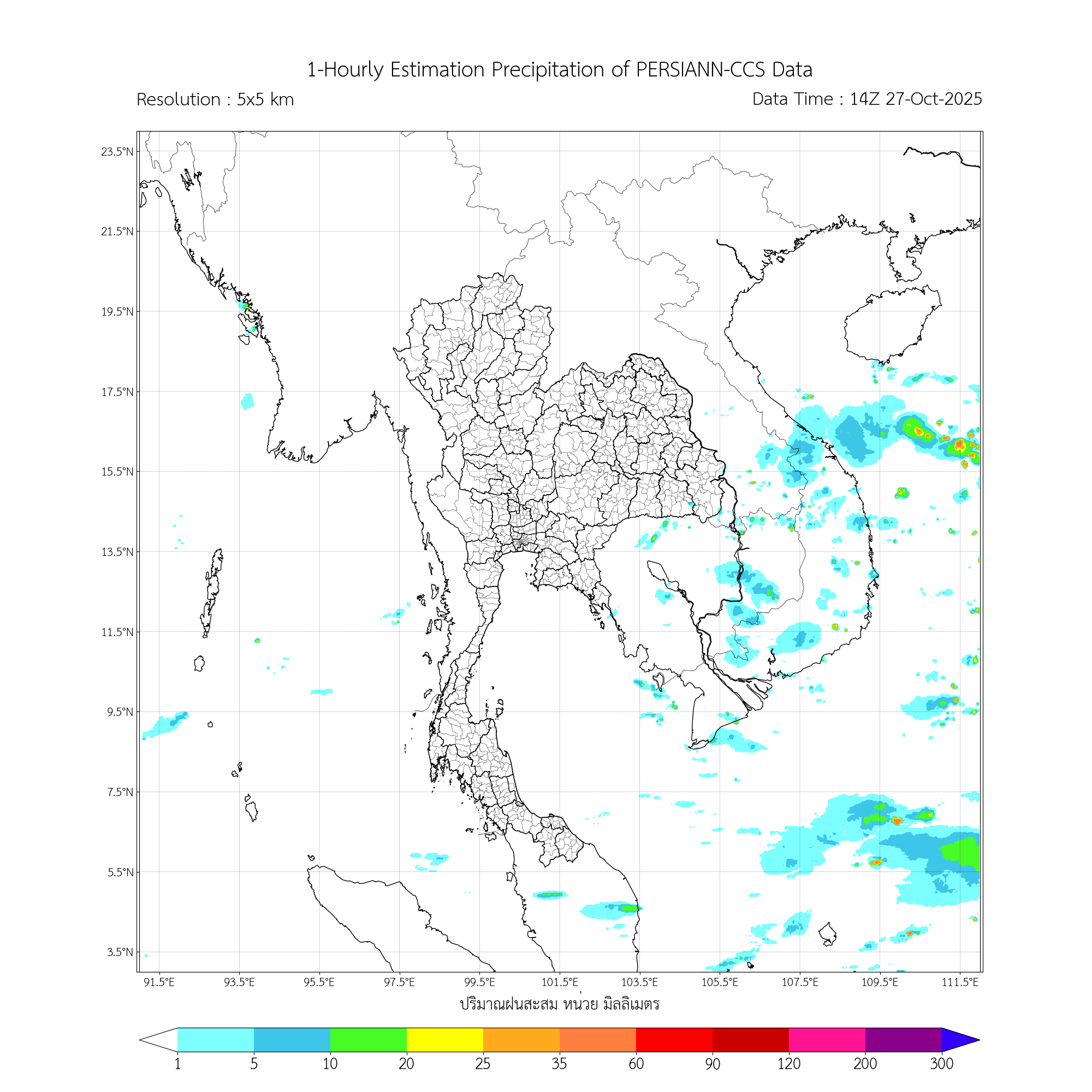 การประมาณค่าฝนจากดาวเทียม เมื่อวาน (26/10/2025)
