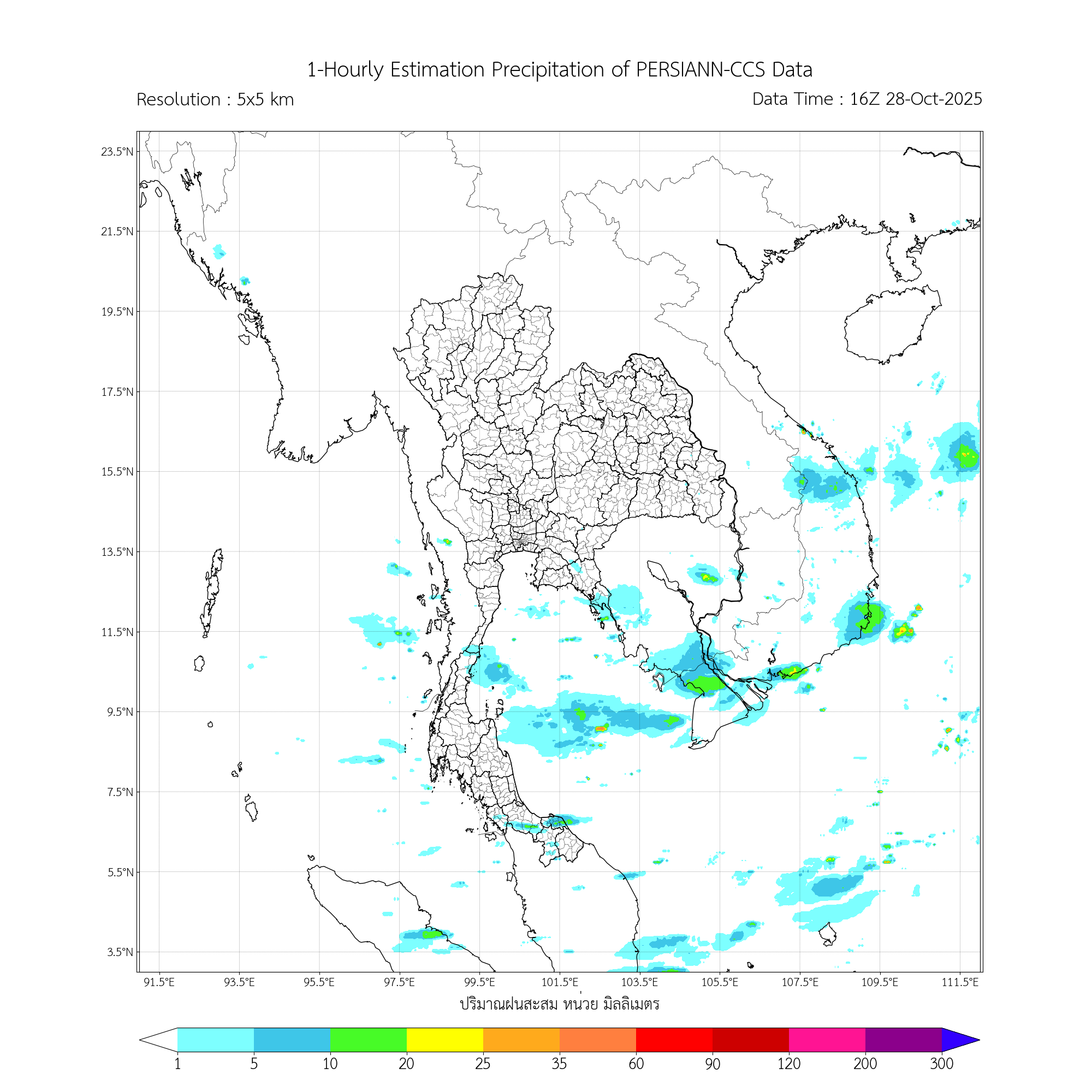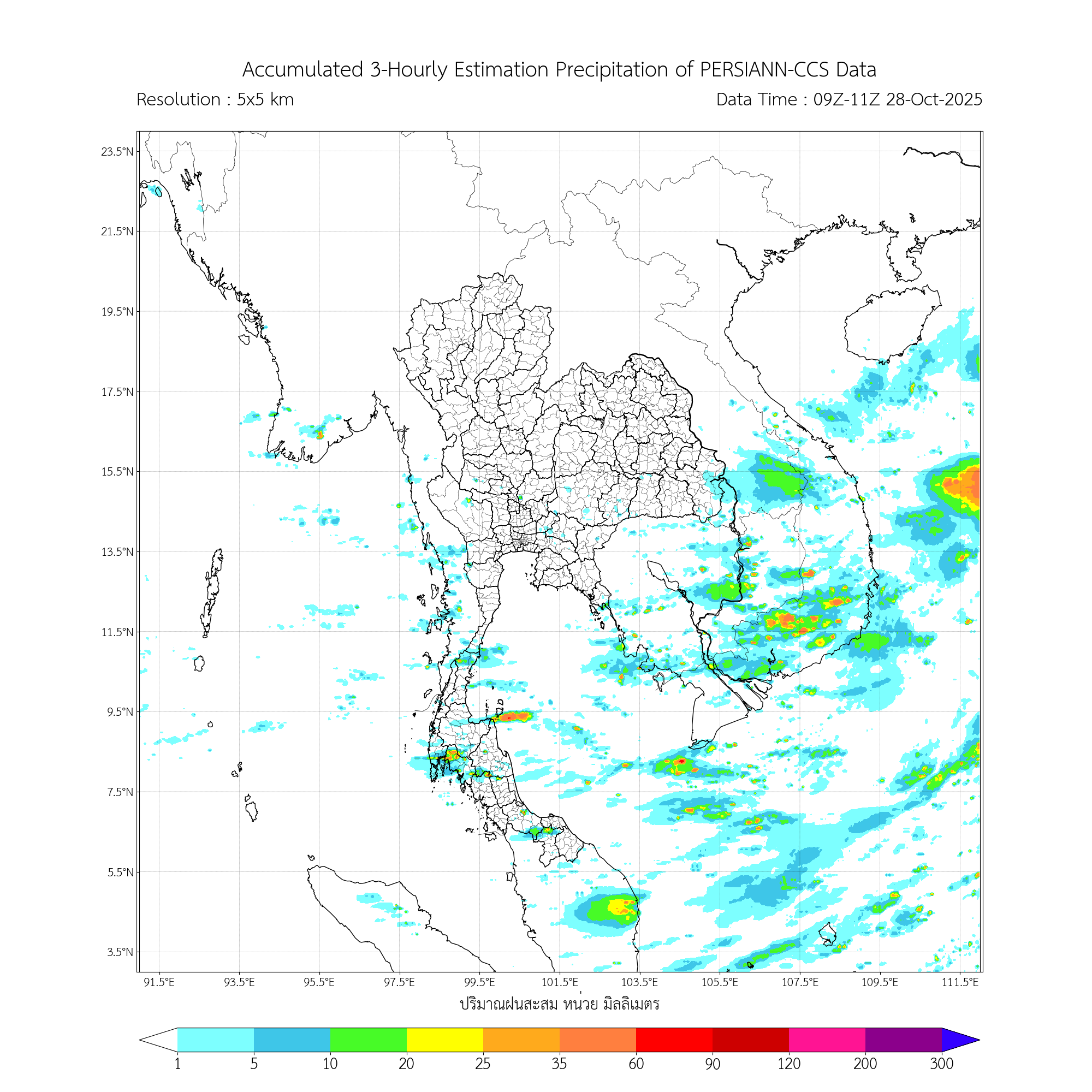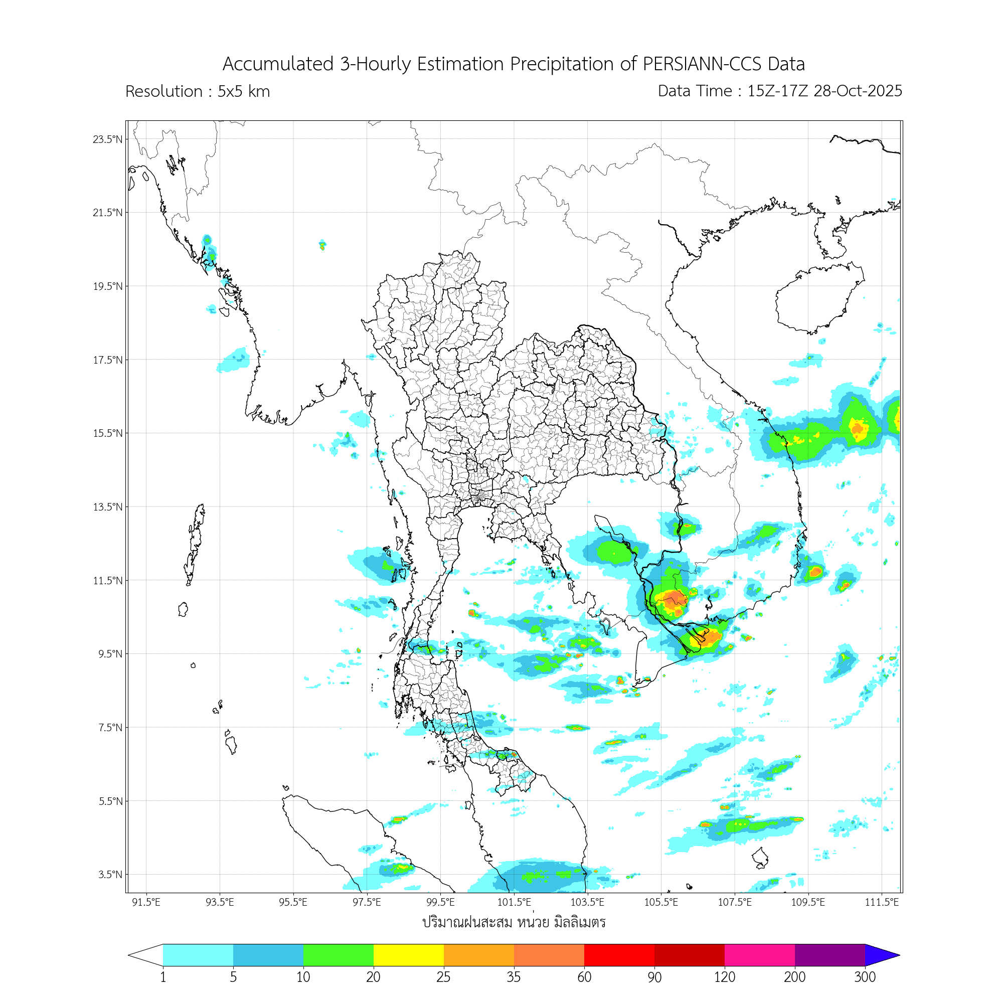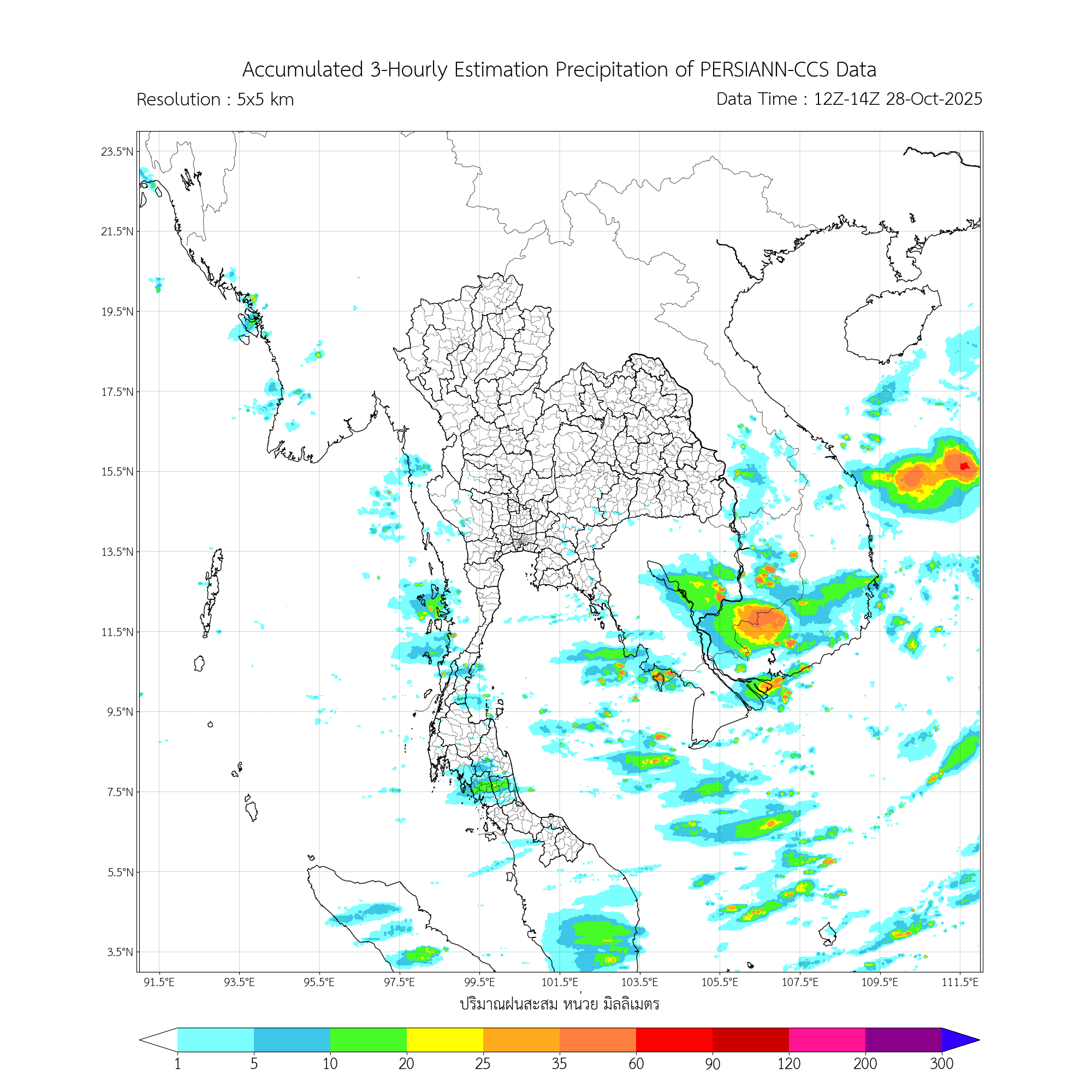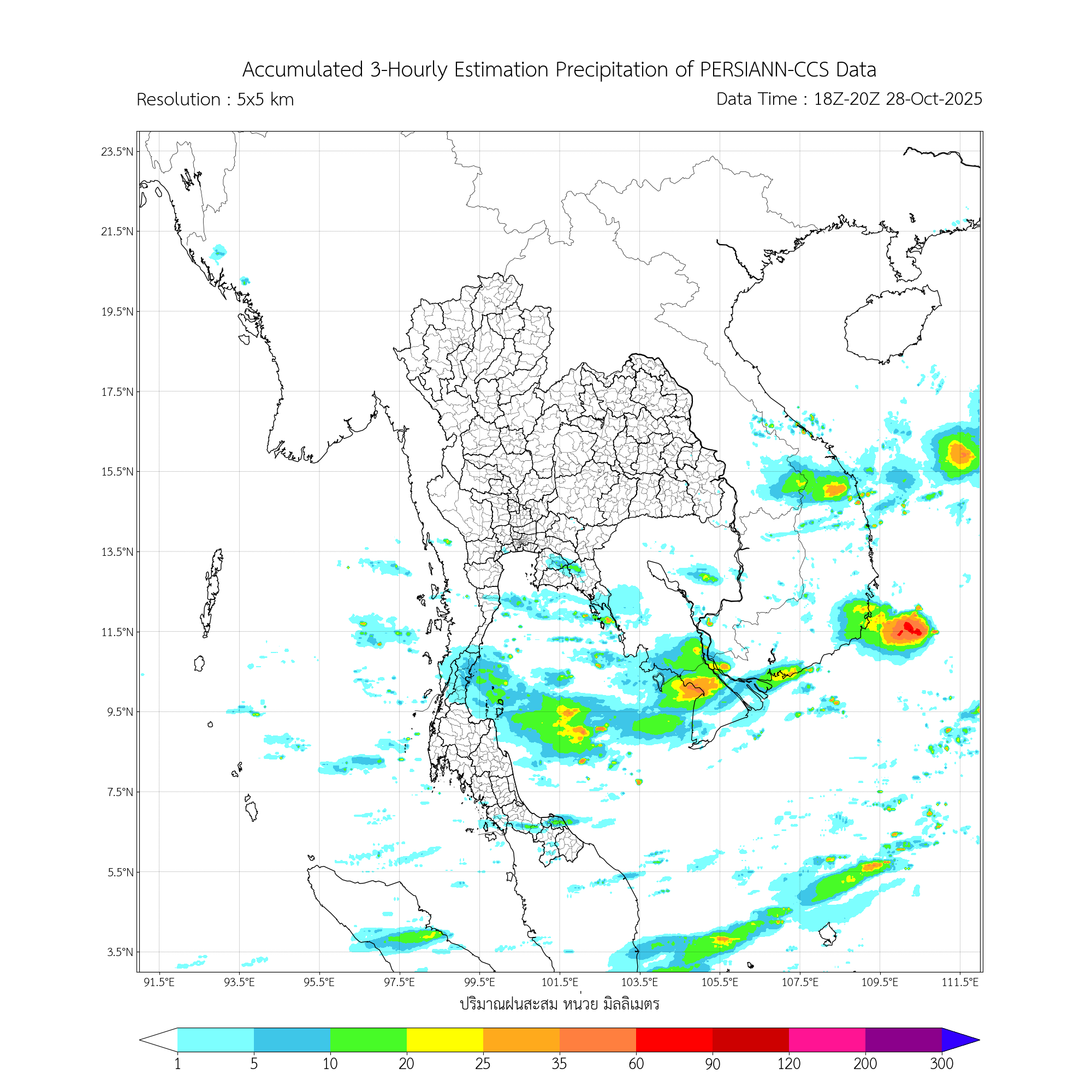 การประมาณค่าฝนจากดาวเทียม เมื่อวาน (28/10/2025)