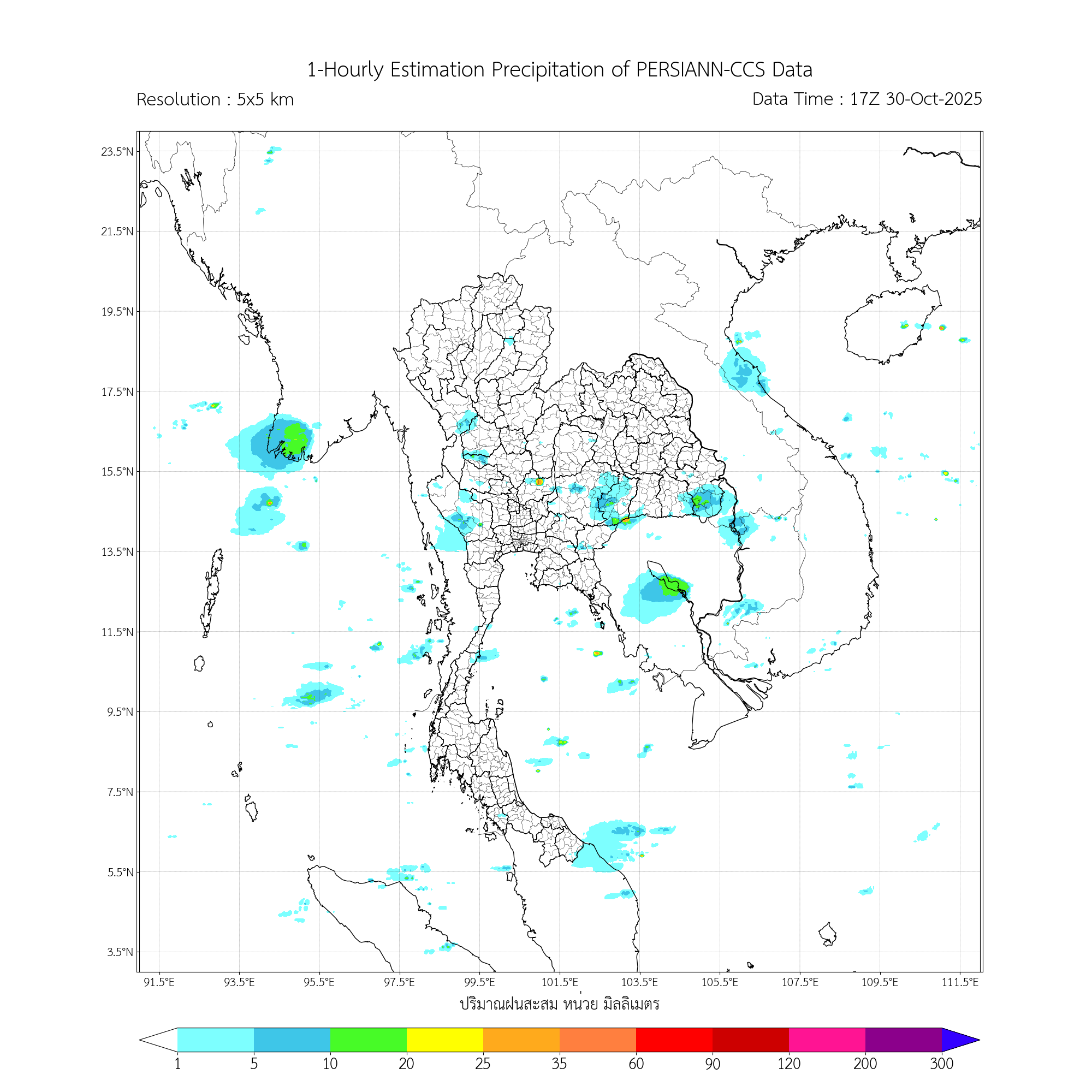 การประมาณค่าฝนจากดาวเทียม เมื่อวาน (30/10/2025)