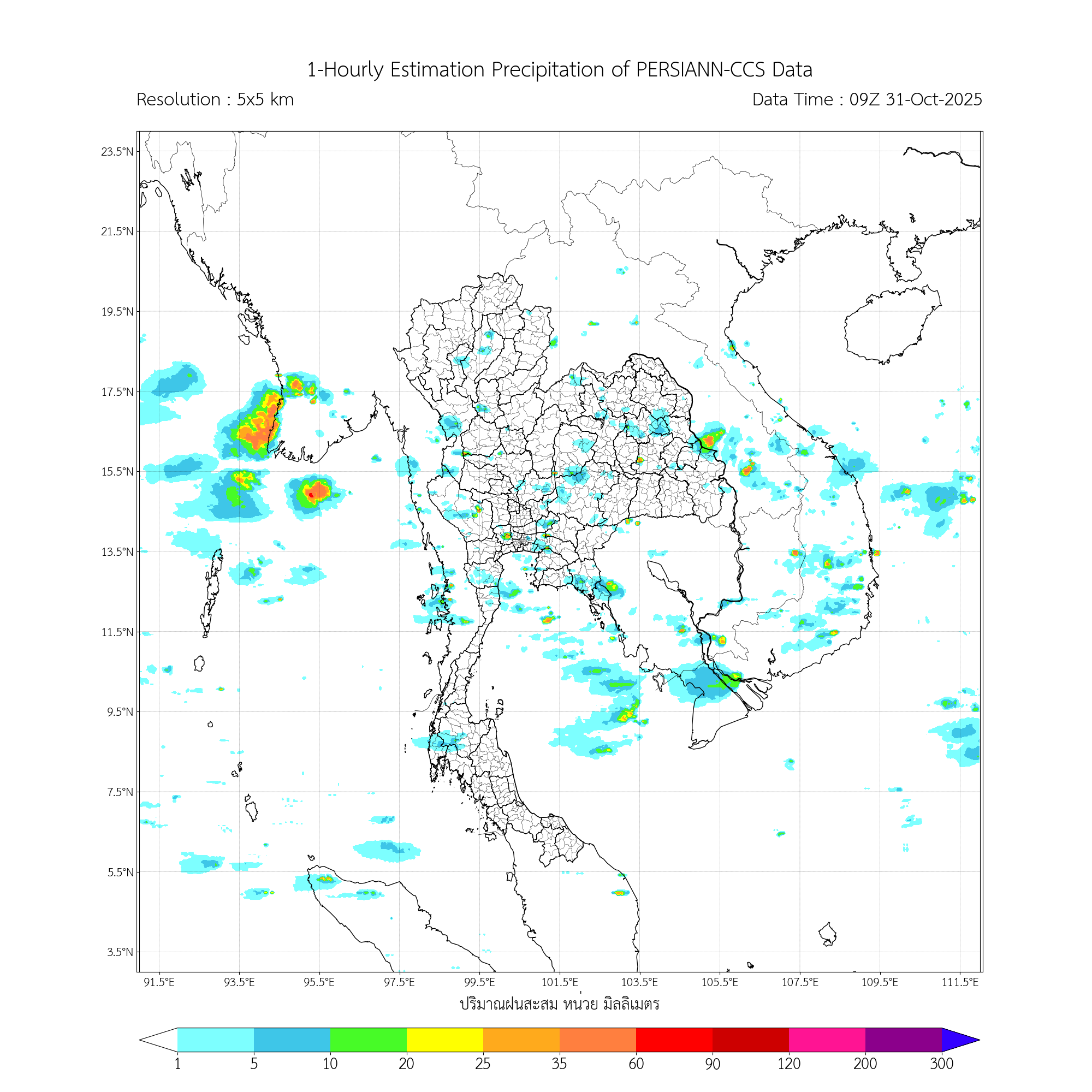การประมาณค่าฝนจากดาวเทียม เมื่อวาน (30/10/2025)