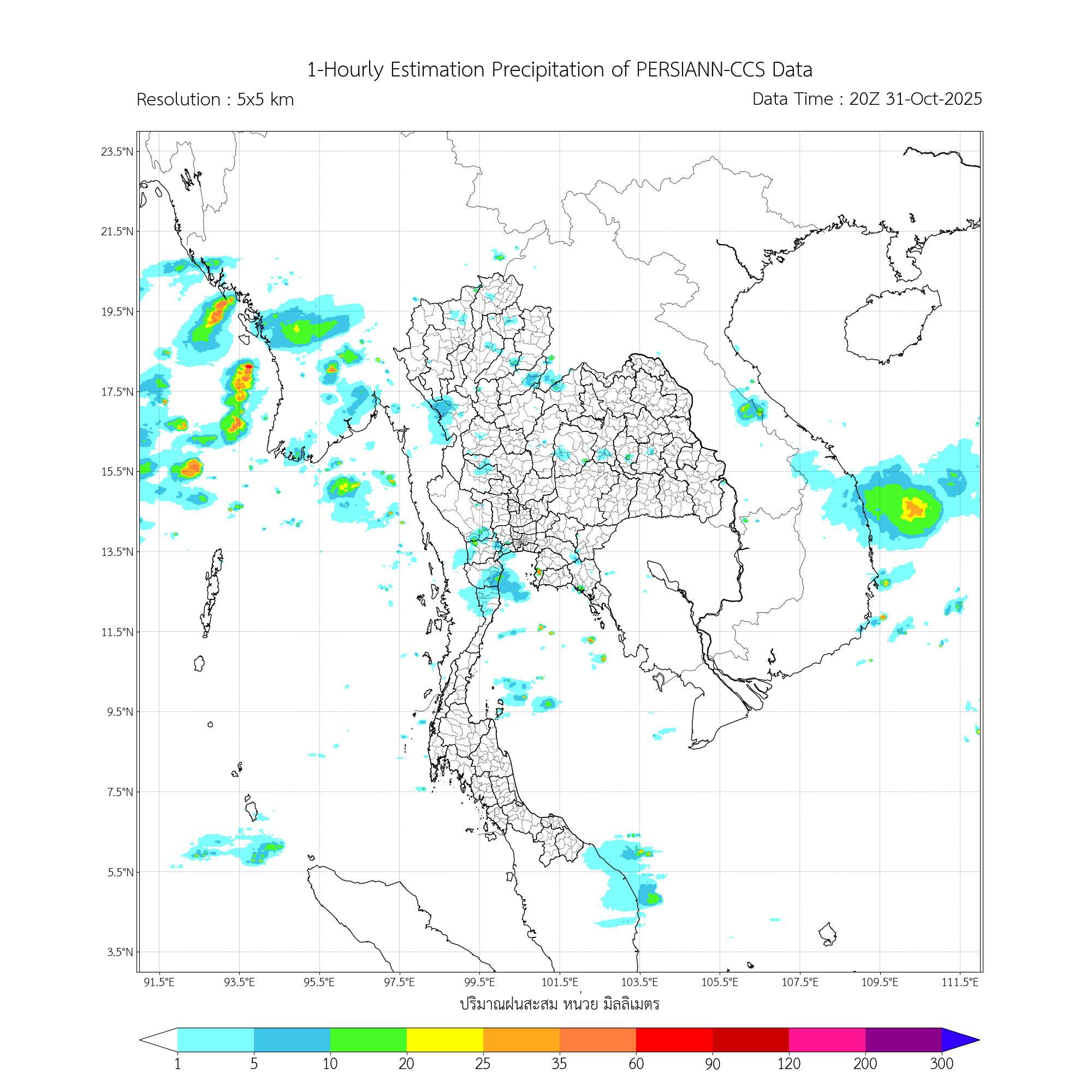 การประมาณค่าฝนจากดาวเทียม เมื่อวาน (31/10/2025)
