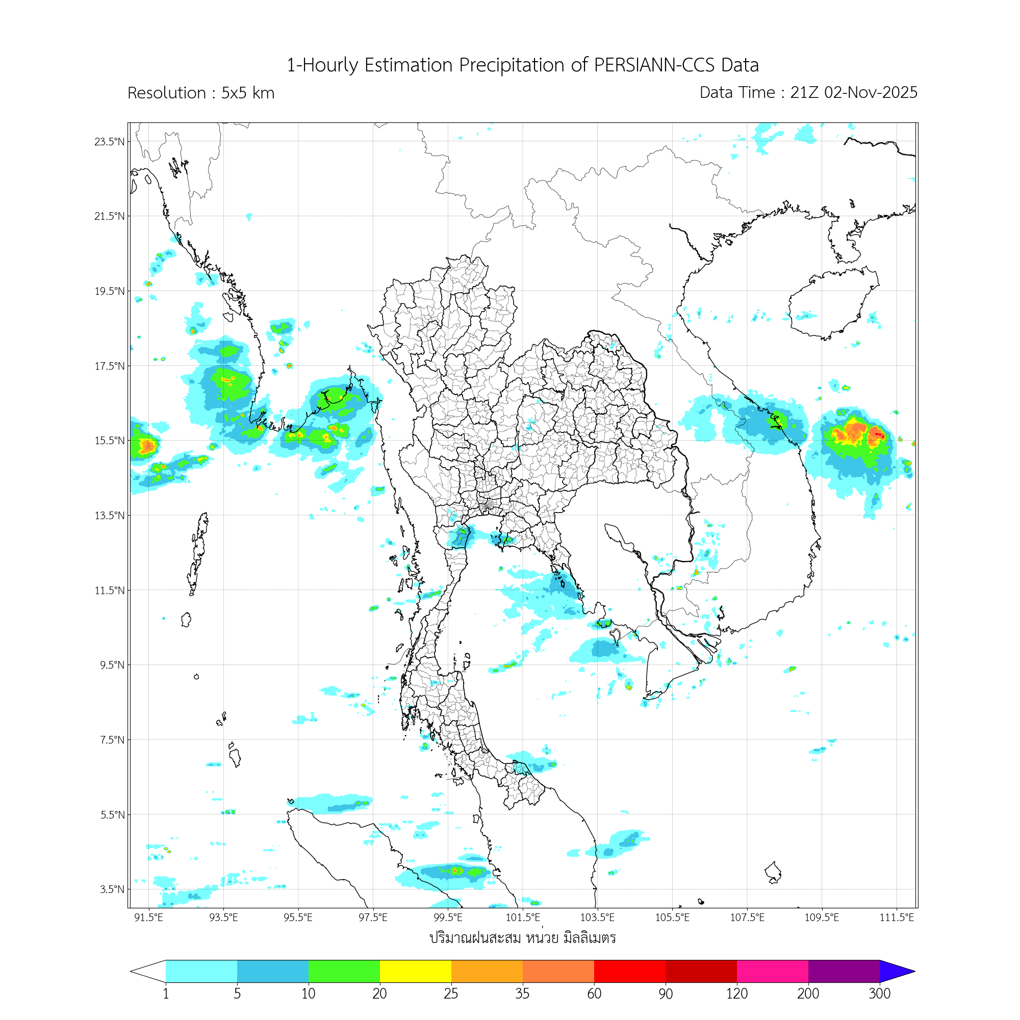 การประมาณค่าฝนจากดาวเทียม เมื่อวาน (02/11/2025)