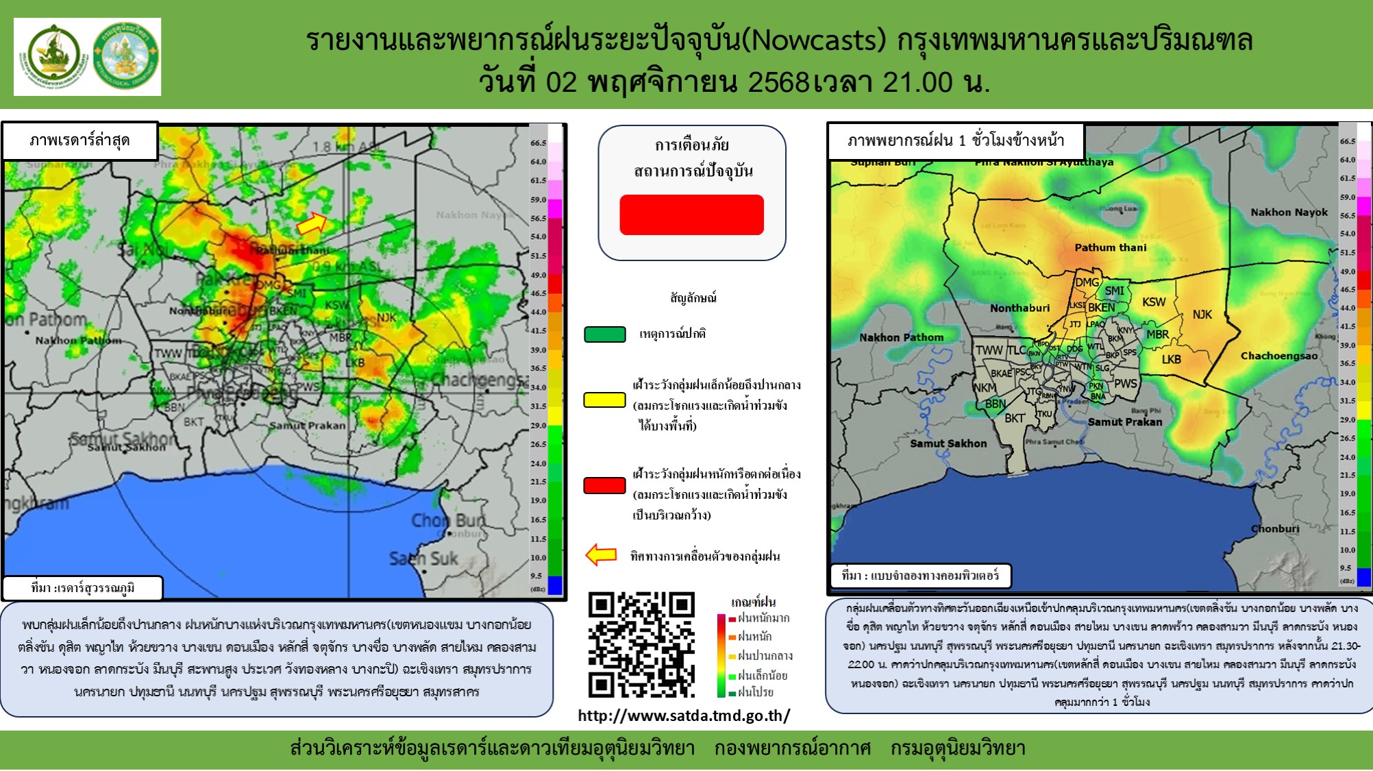 ปริมาณฝนสะสมรายวันจากการประมาณค่าฝนด้วยดาวเทียมบริเวณประเทศไทย ปริมาณฝนสะสมรายวันจากเรดาร์ตรวจอากาศบริเวณกรุงเทพและปริมณฑล