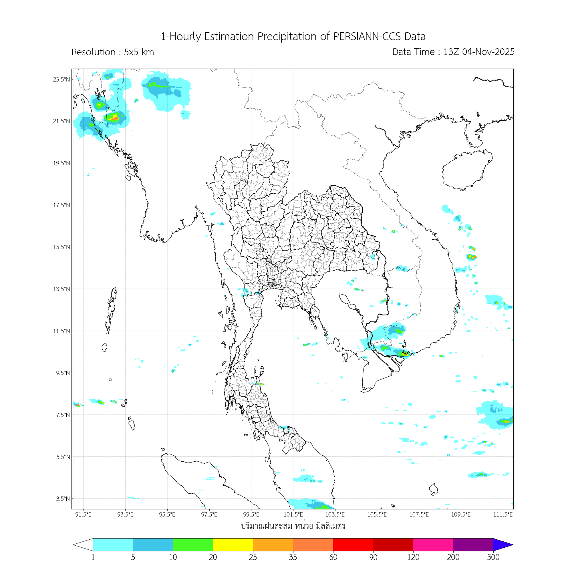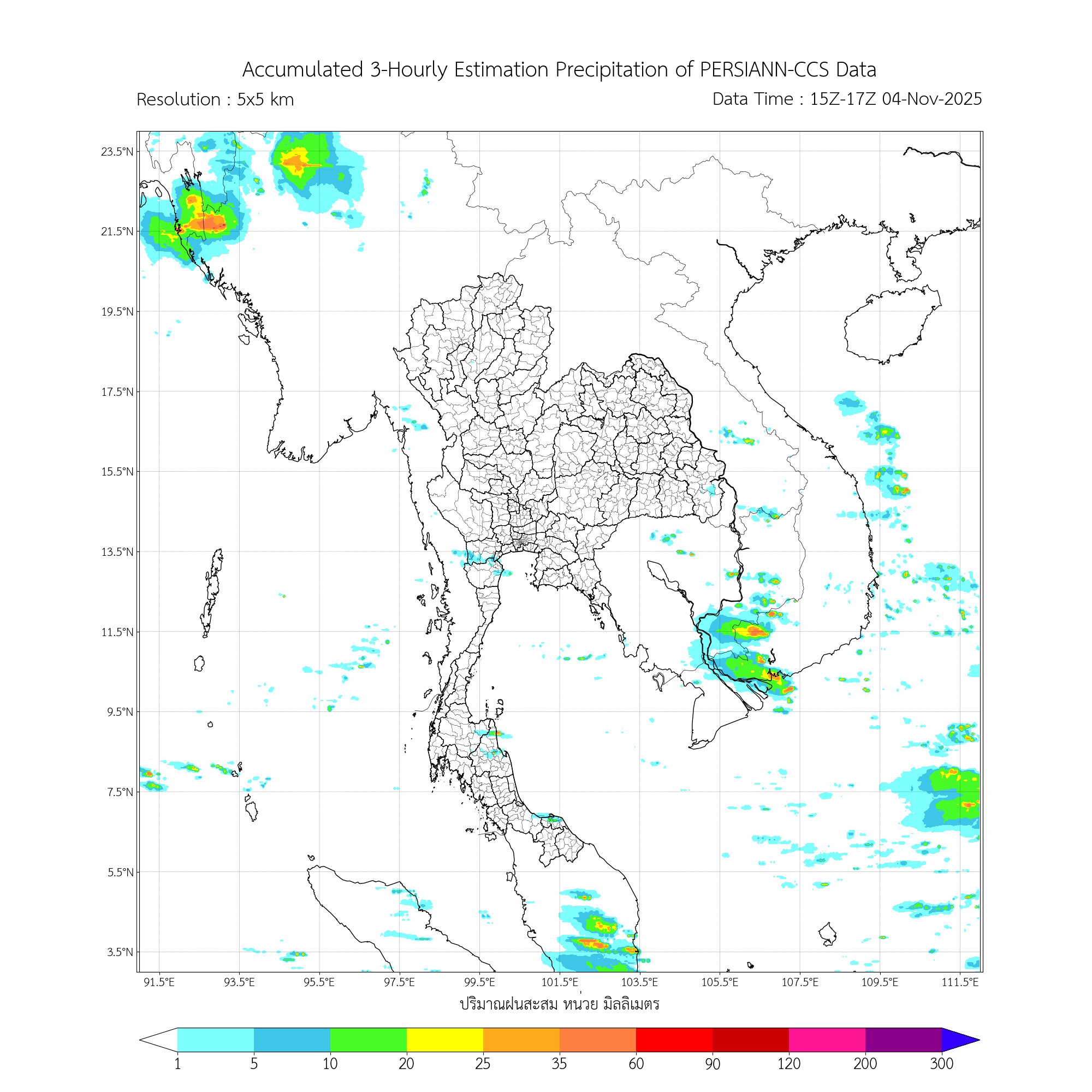 การประมาณค่าฝนจากดาวเทียม เมื่อวาน (03/11/2025)