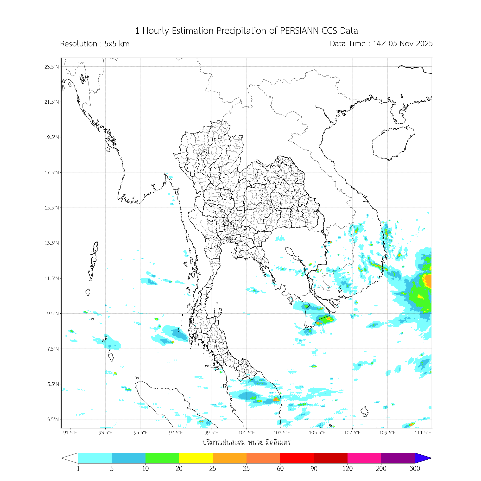 การประมาณค่าฝนจากดาวเทียม เมื่อวาน (04/11/2025)