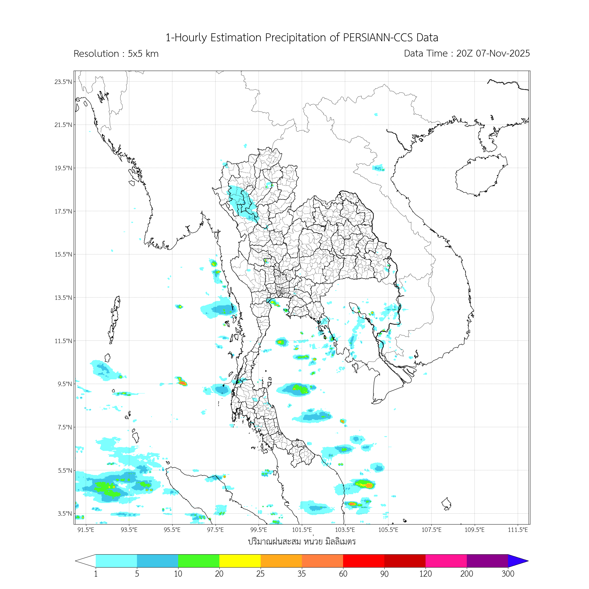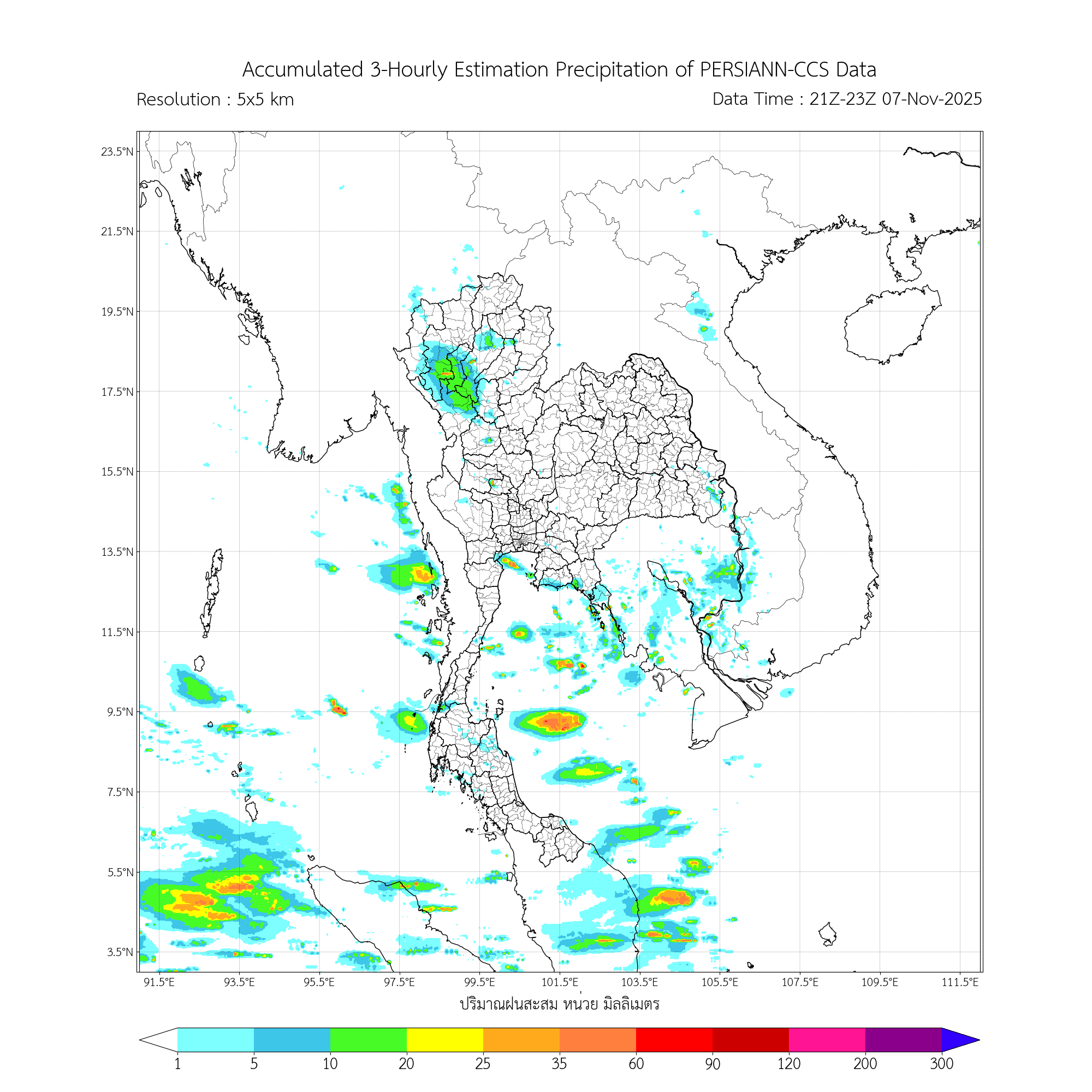 การประมาณค่าฝนจากดาวเทียม เมื่อวาน (07/11/2025)