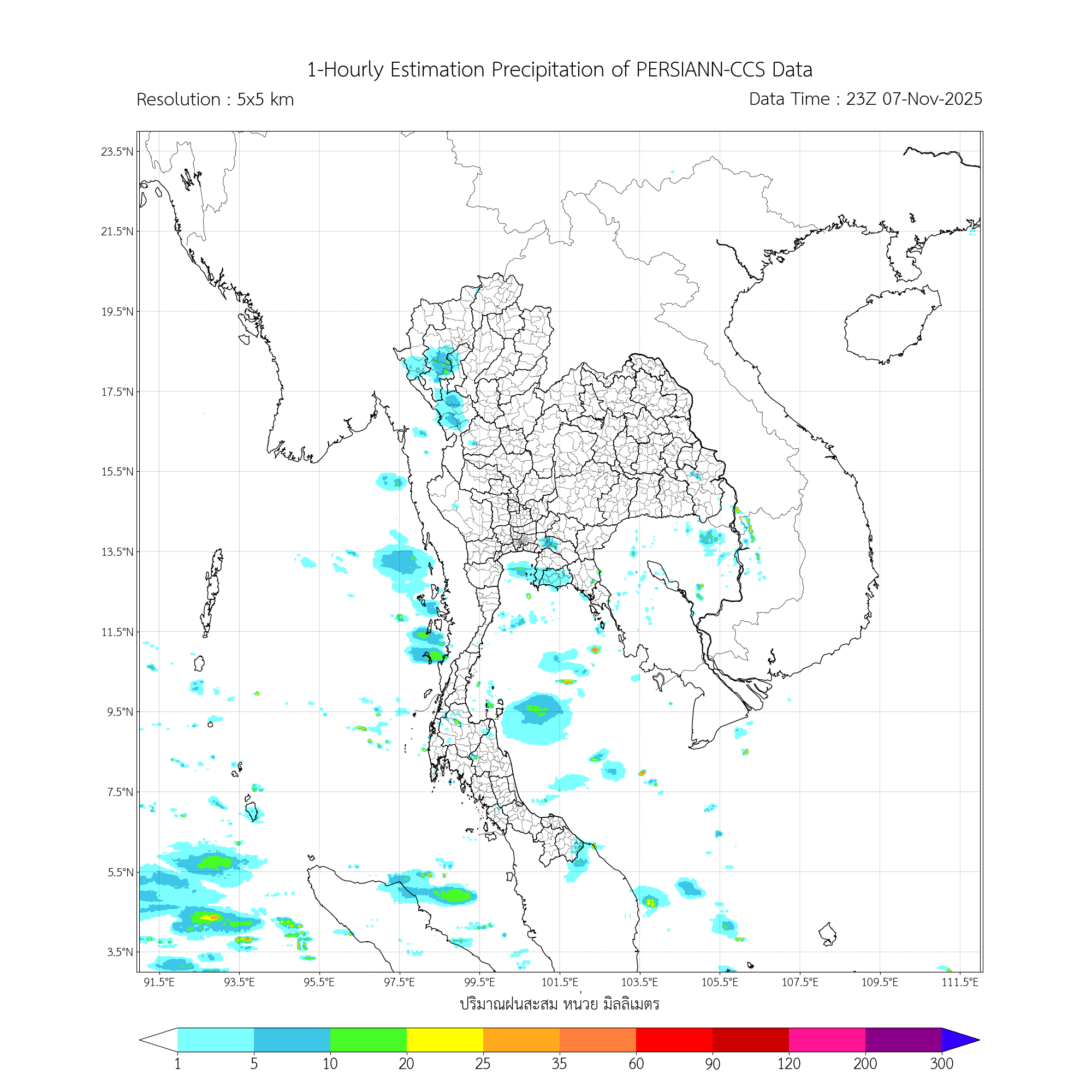 การประมาณค่าฝนจากดาวเทียม เมื่อวาน (07/11/2025)