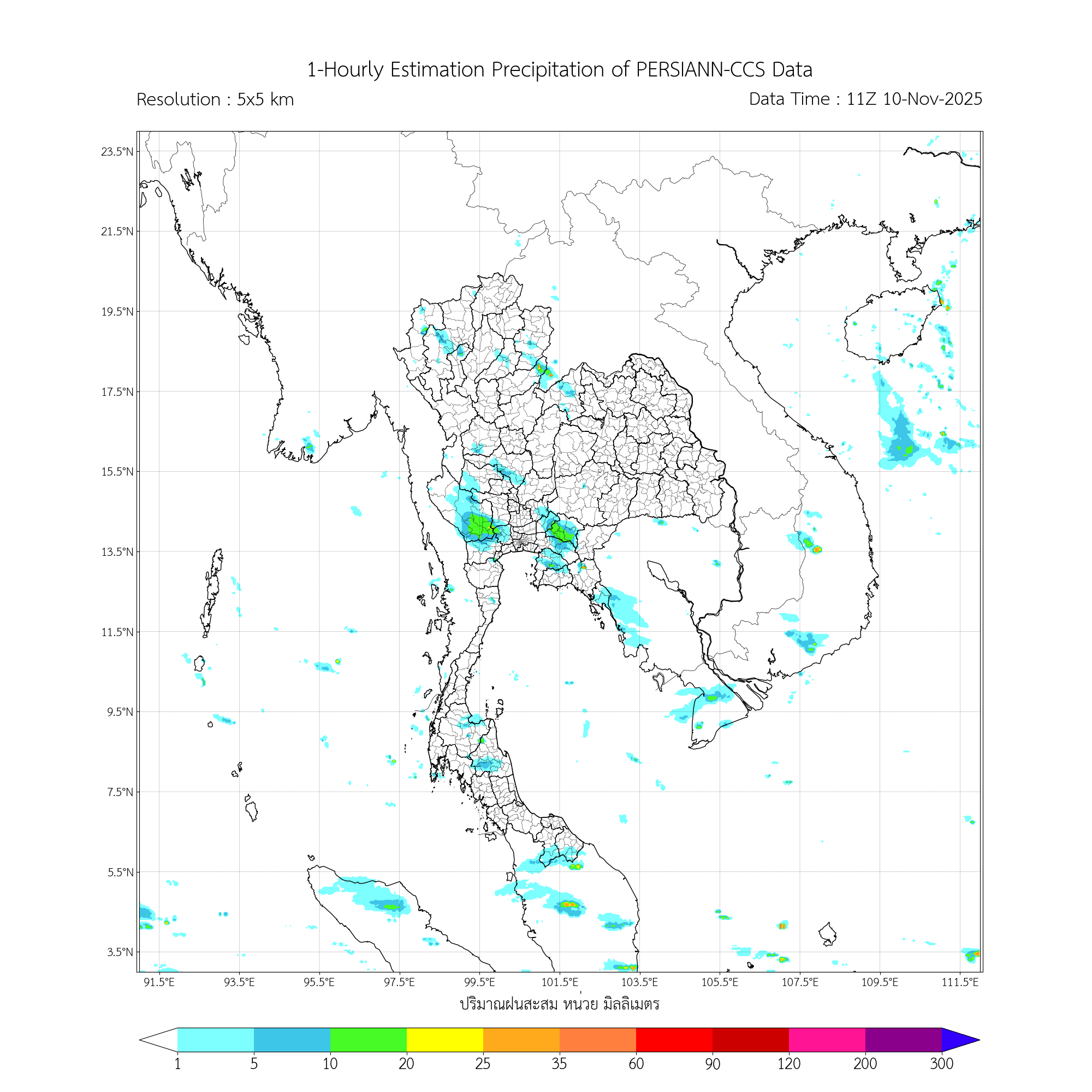 การประมาณค่าฝนจากดาวเทียม เมื่อวาน (09/11/2025)