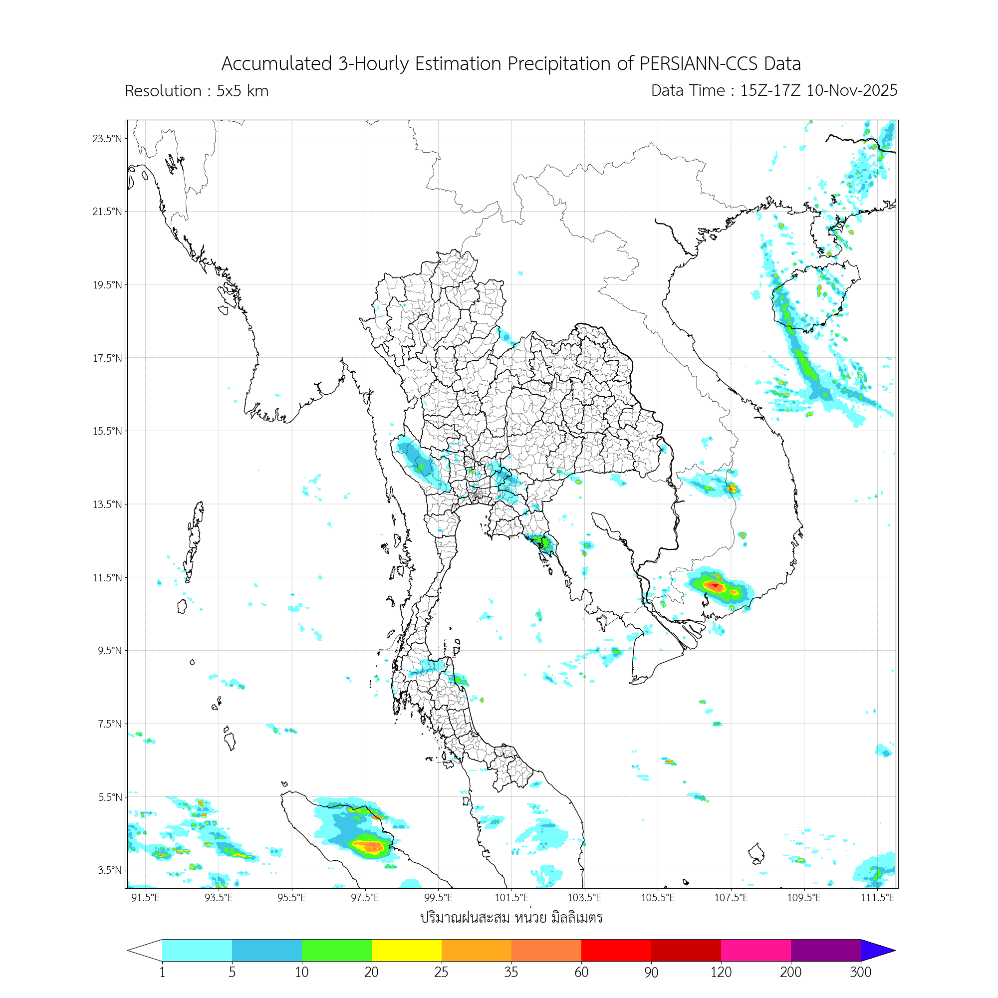 การประมาณค่าฝนจากดาวเทียม เมื่อวาน (09/11/2025)
