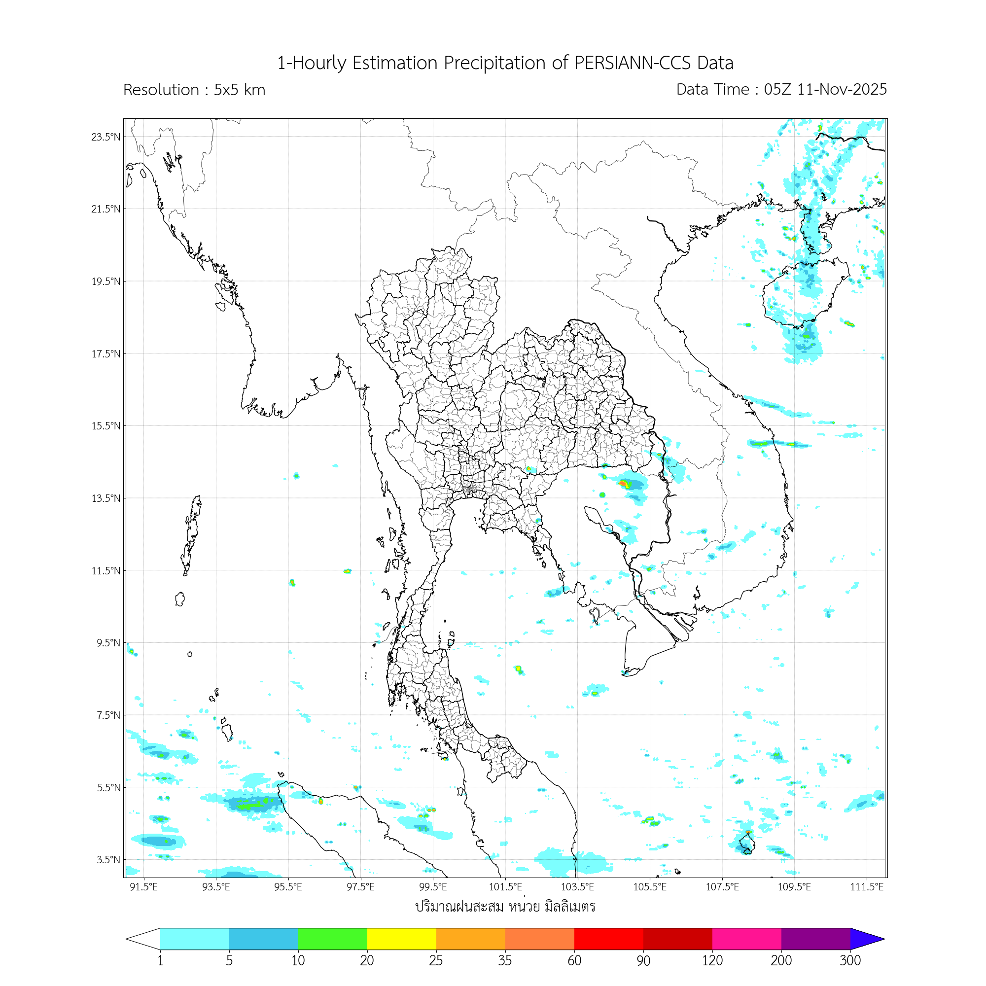 ค่าประมาณฝนสะสม 3 ชั่วโมง จากดาวเทียมอุตุนิยมวิทยา