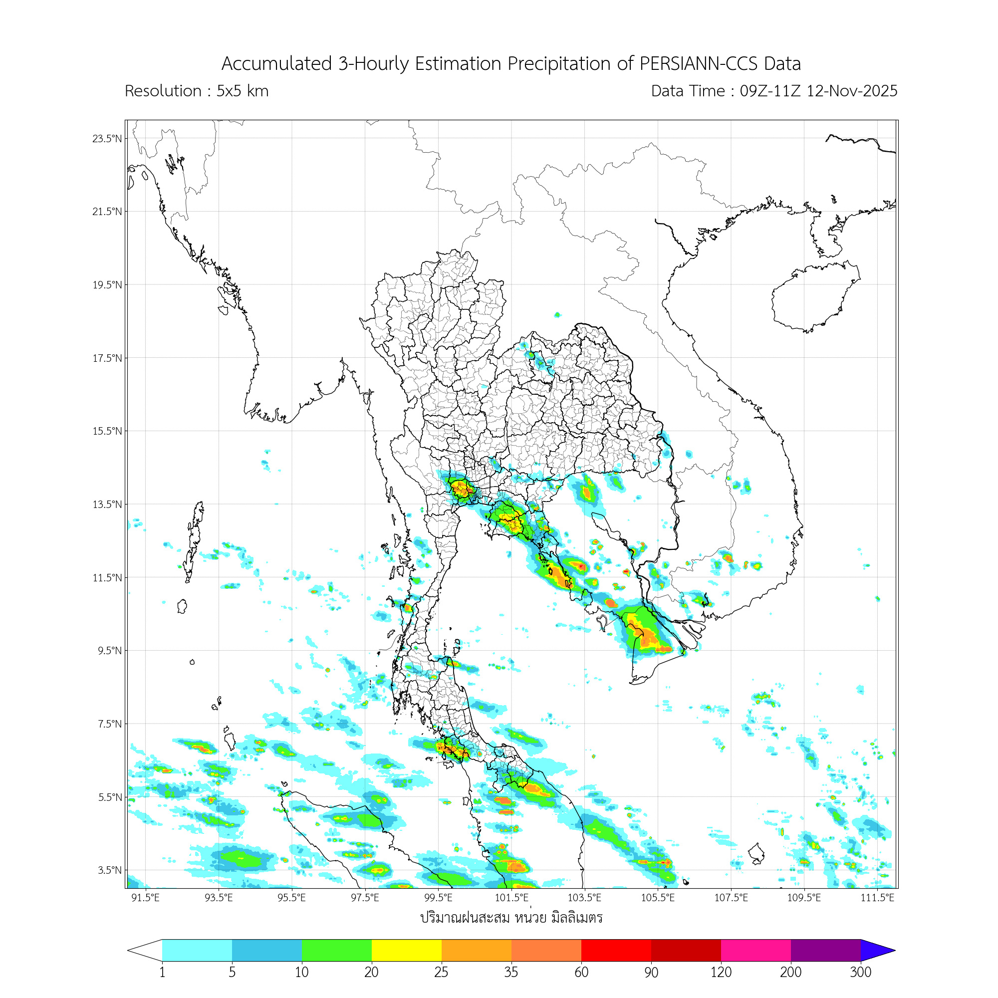 การประมาณค่าฝนจากดาวเทียม เมื่อวาน (11/11/2025)