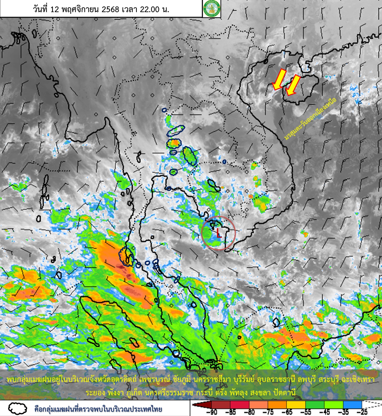 การประมาณค่าฝนจากดาวเทียม เมื่อวาน (12/11/2025)
