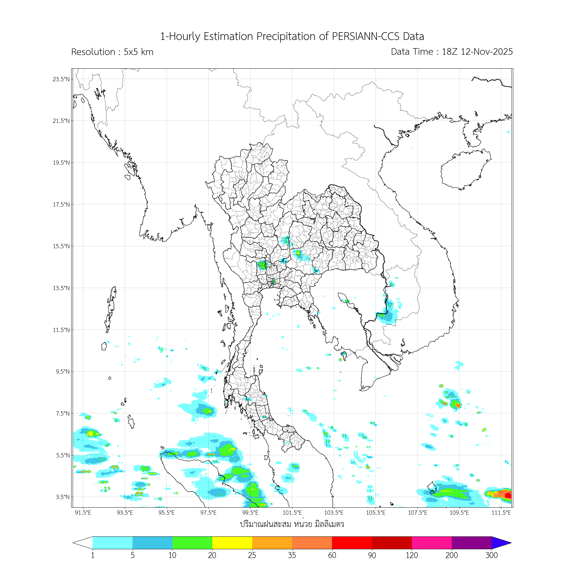 การประมาณค่าฝนจากดาวเทียม เมื่อวาน (12/11/2025)
