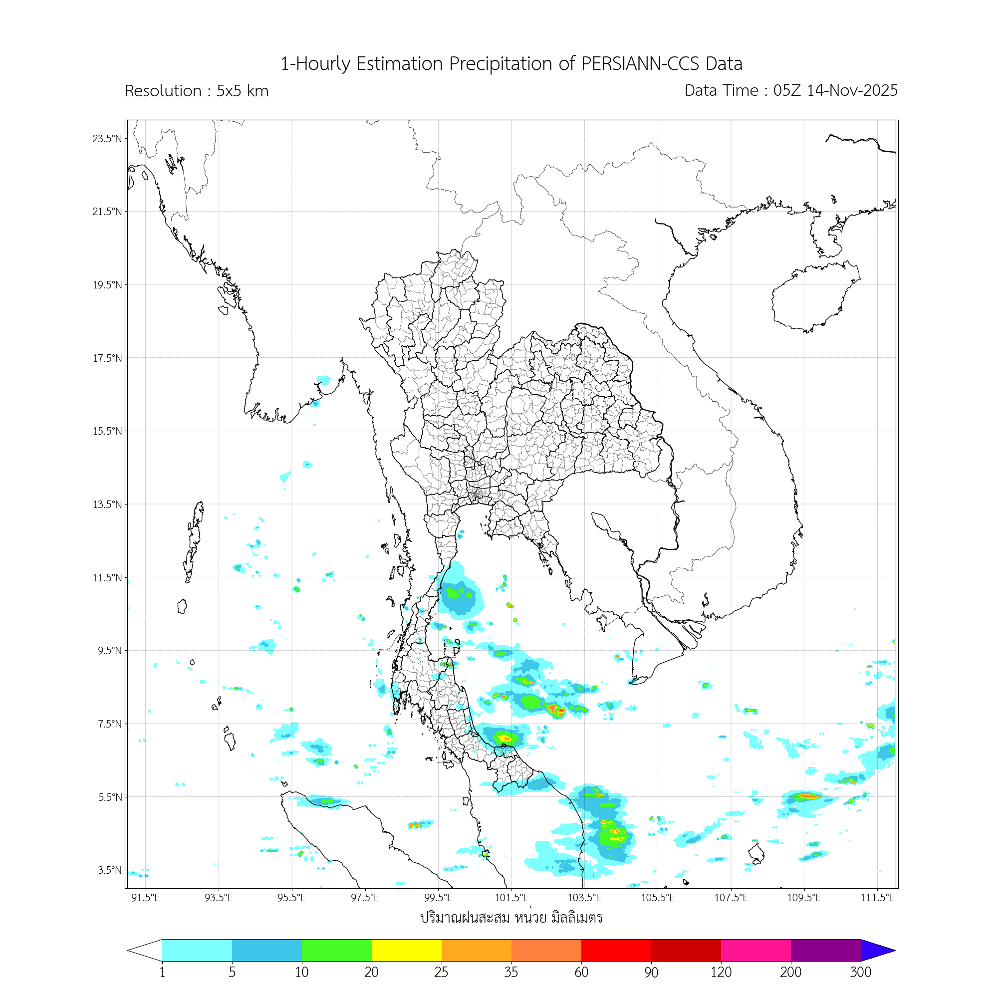 การประมาณค่าฝนจากดาวเทียม เมื่อวาน (13/11/2025)