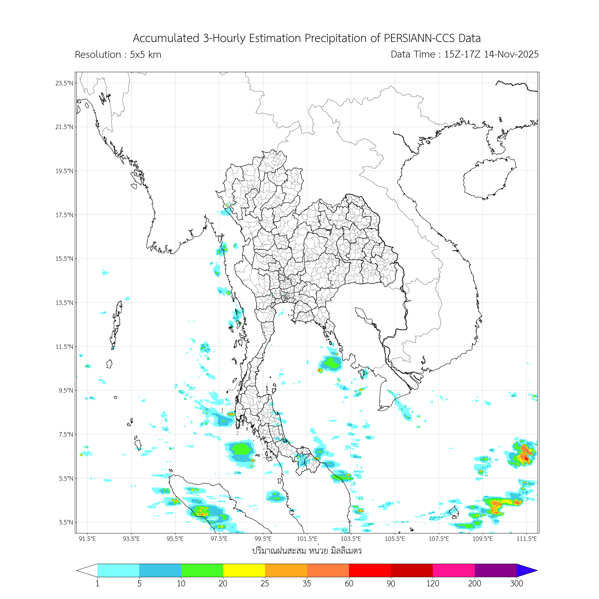 การประมาณค่าฝนจากดาวเทียม เมื่อวาน (13/11/2025)