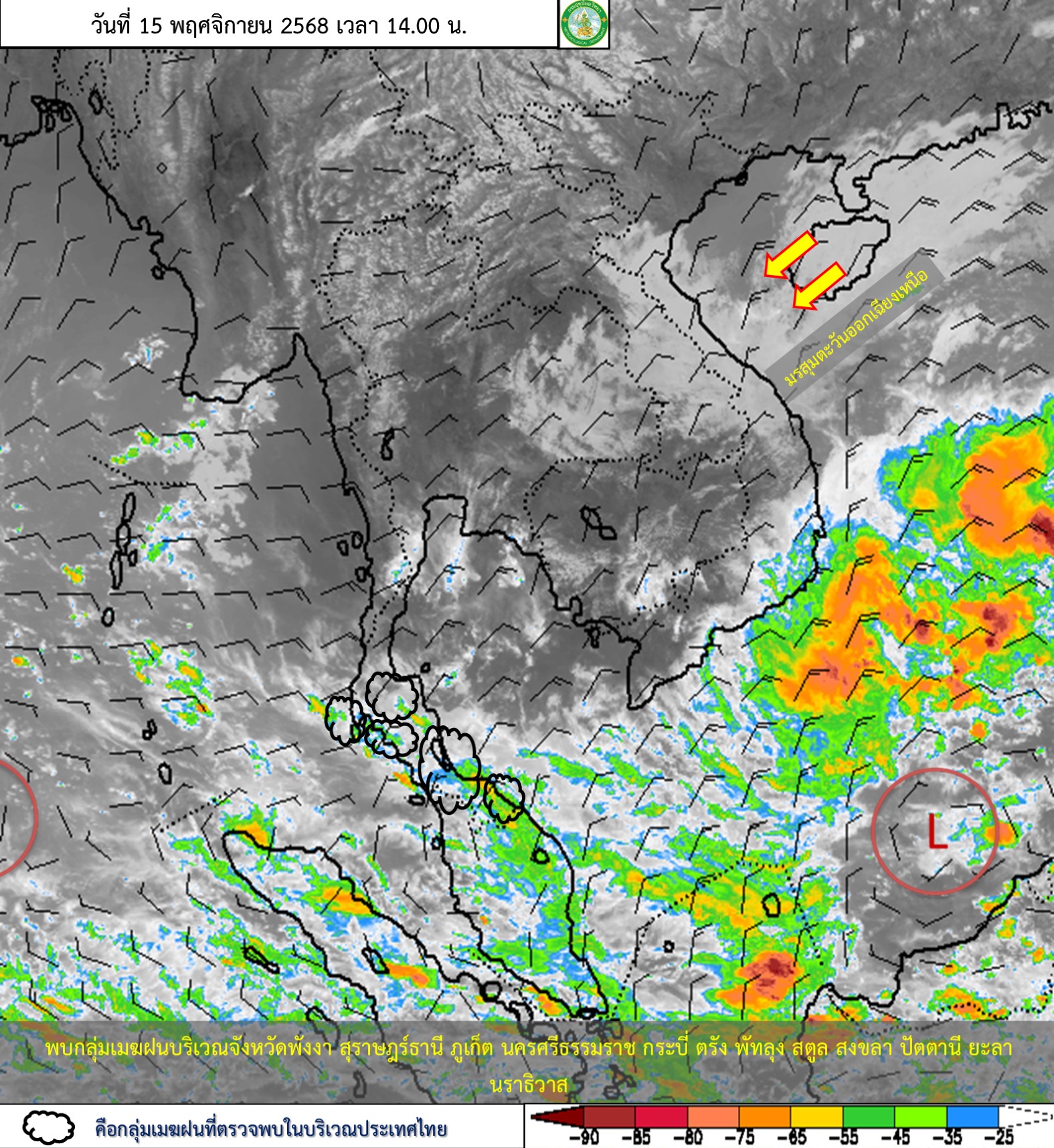 การประมาณค่าฝนจากดาวเทียม เมื่อวาน (14/11/2025)