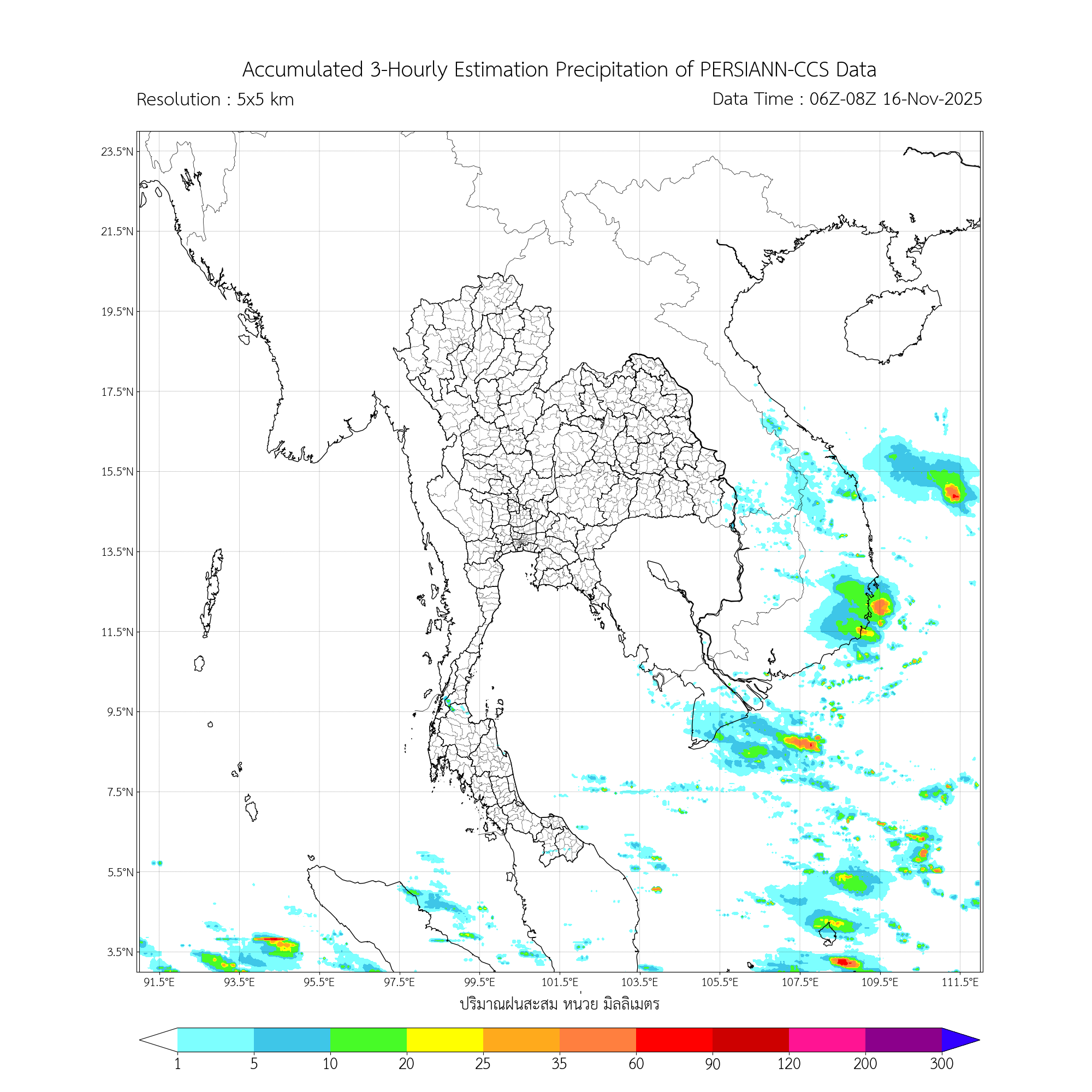 การประมาณค่าฝนจากดาวเทียม เมื่อวาน (15/11/2025)