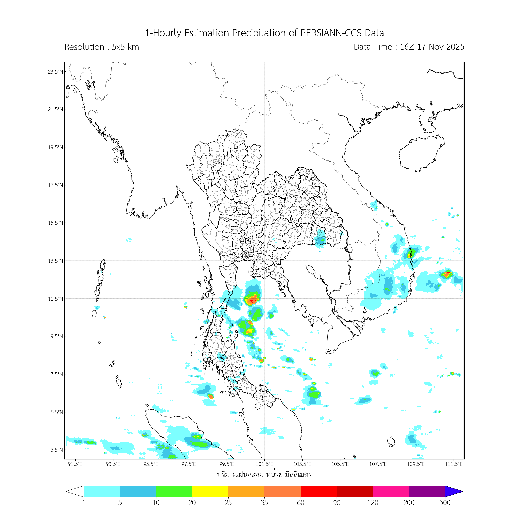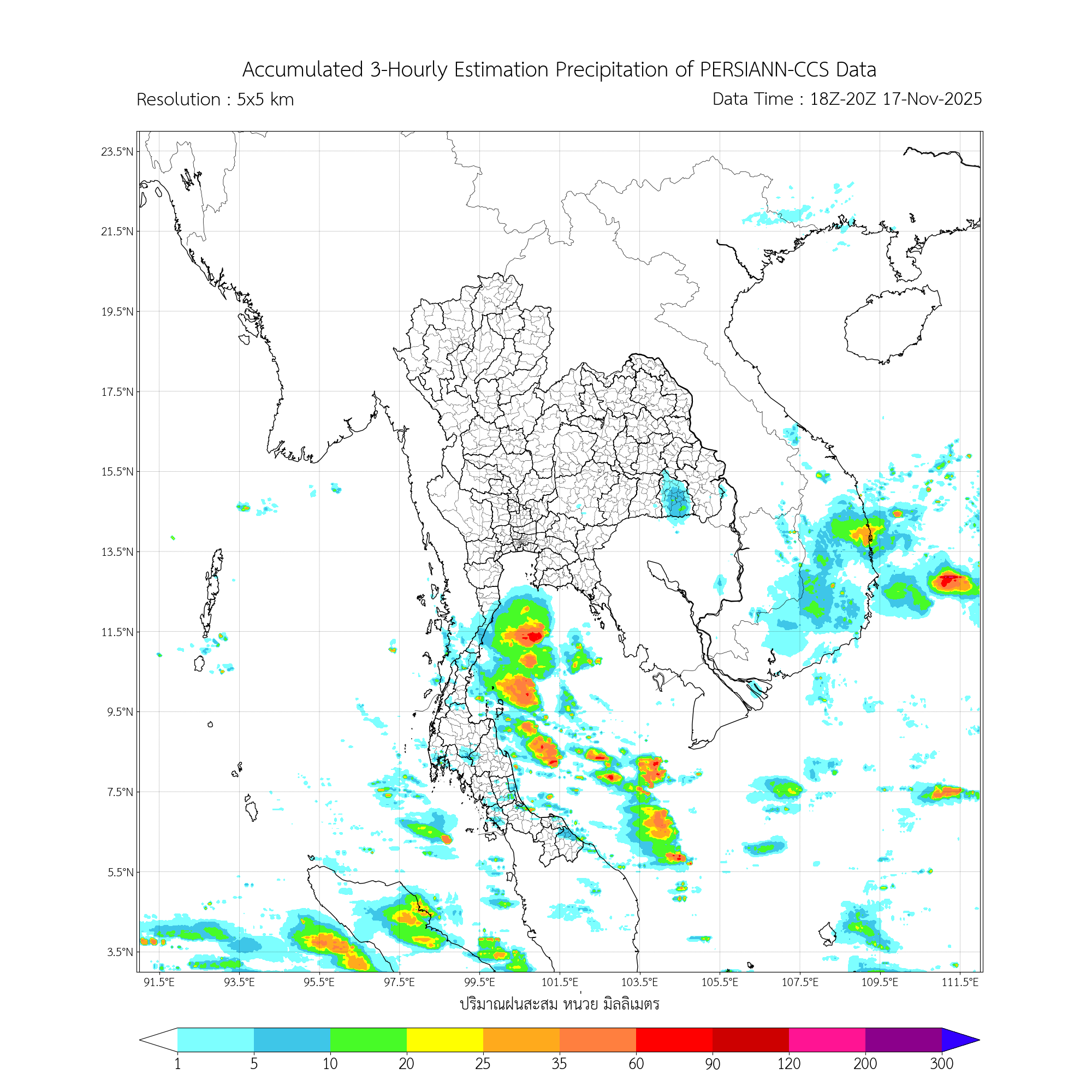 การประมาณค่าฝนจากดาวเทียม เมื่อวาน (17/11/2025)