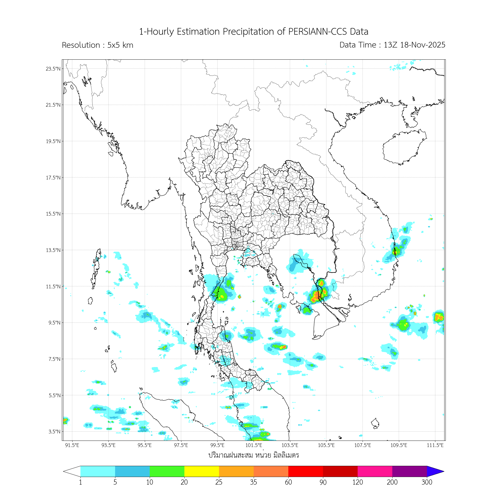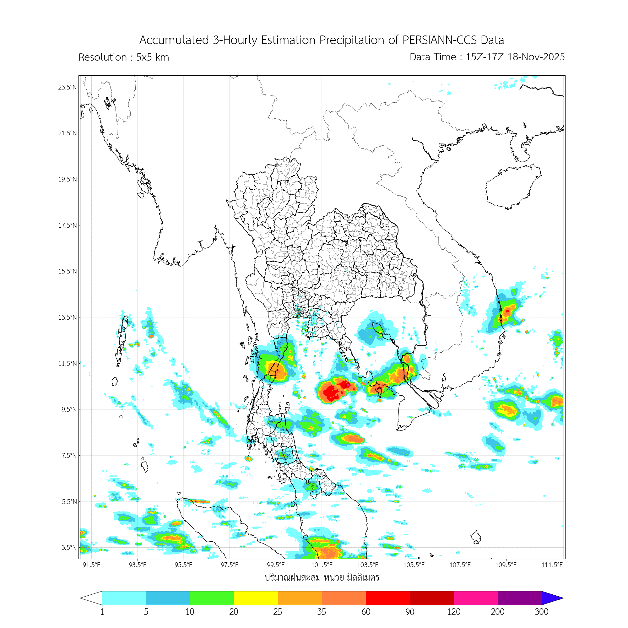การประมาณค่าฝนจากดาวเทียม เมื่อวาน (17/11/2025)