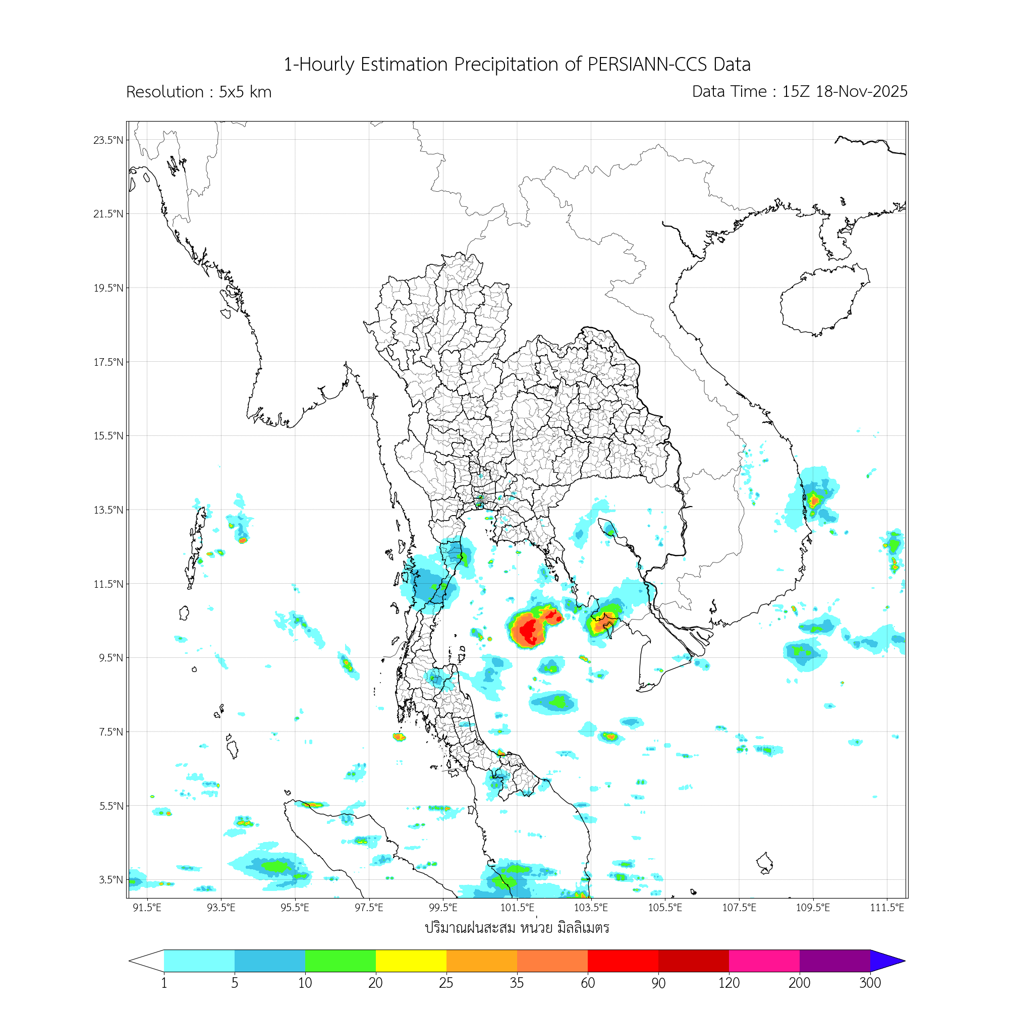 การประมาณค่าฝนจากดาวเทียม เมื่อวาน (18/11/2025)